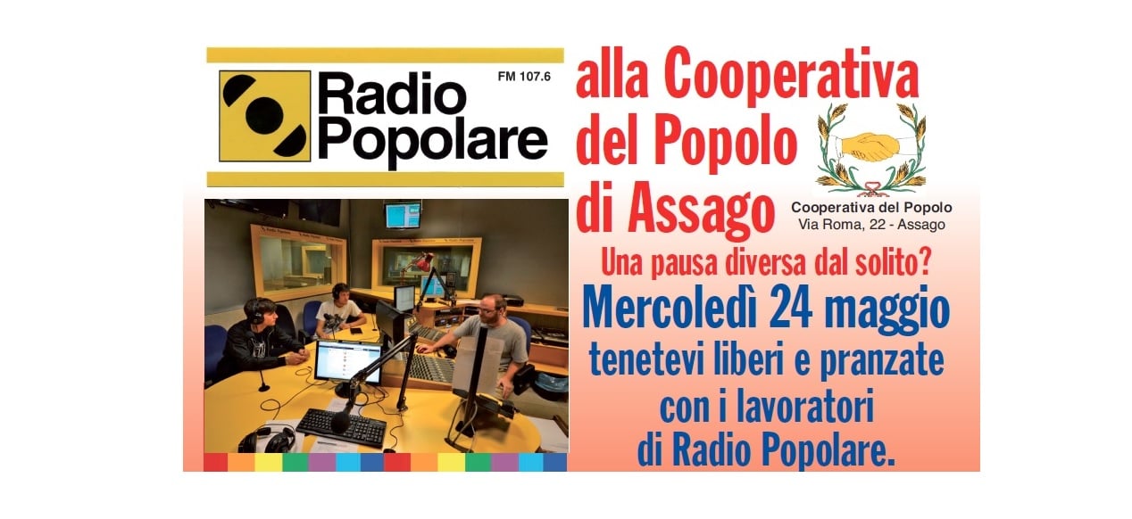 Mercoledì 24 maggio saremo alla Cooperativa del Popolo di Assago in via Roma 22.