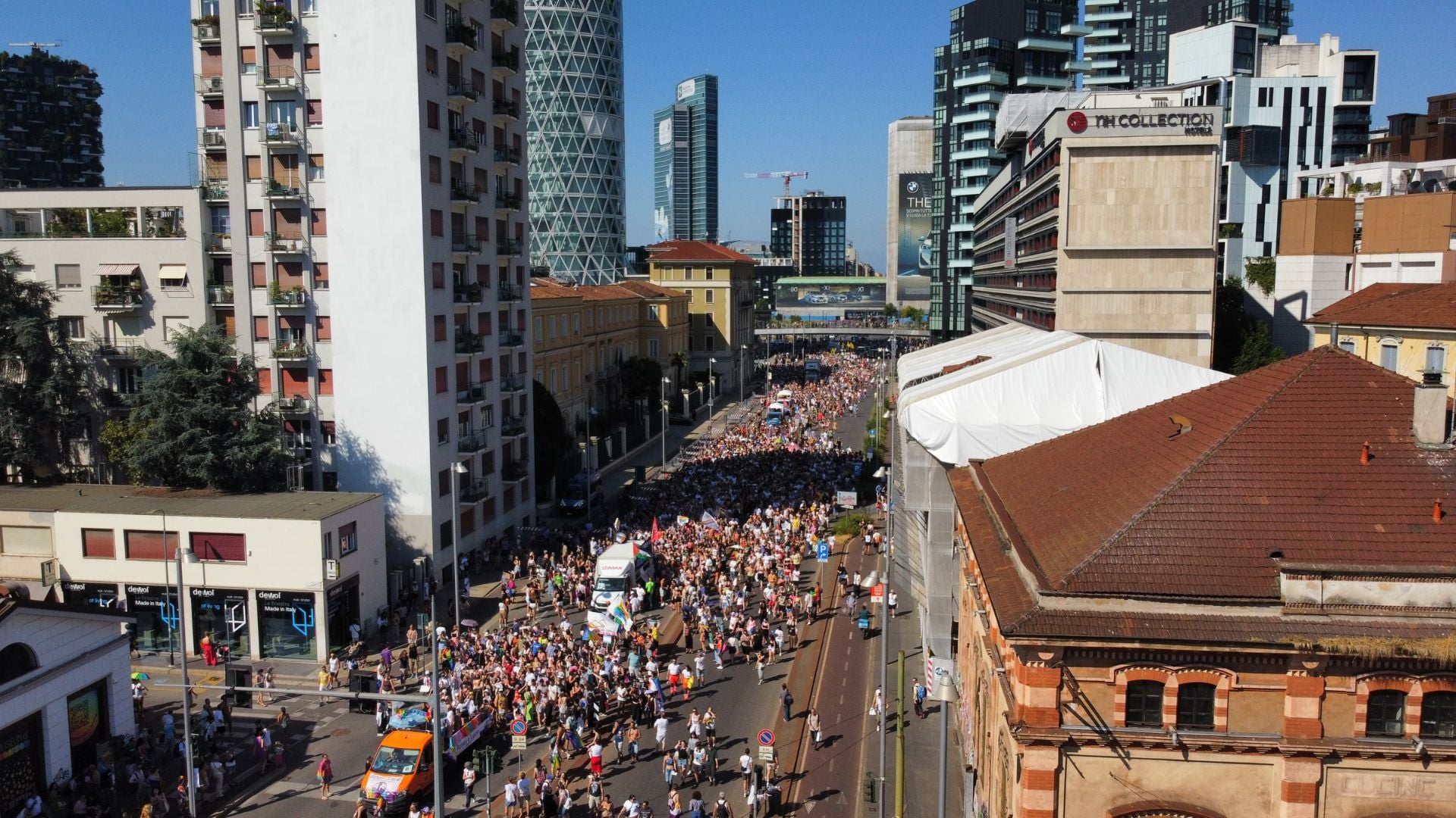 Quasi trecentomila persone hanno sfilato dalla Stazione Centrale all’Arco della Pace nel caldo torrido di fine giugno e sotto il sole cocente. Il trenino fucsia delle Famiglie Arcobaleno che da vent’anni tutelano i diritti dei figli nati da genitori dello stesso sesso, con Arcigay e Agedo hanno aperto il corteo, con carri, striscioni e cartelli.