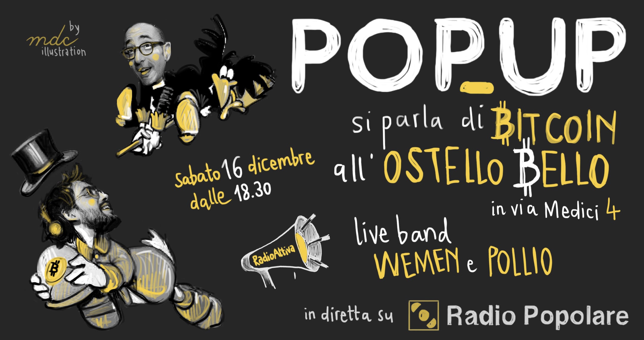Sabato 16 dicembre PopUp torna per il consueto appuntamento mensile in diretta dall’Ostello Bello in via Medici 4 dalle 18.30 in speciale versione “abbonaggio”.