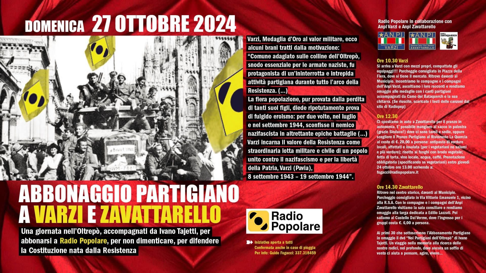 - L’evento è organizzato da Radio Popolare in collaborazione con ANPI Varzi e ANPI Zavattarello, Sezione “51° Brigata Capettini”.