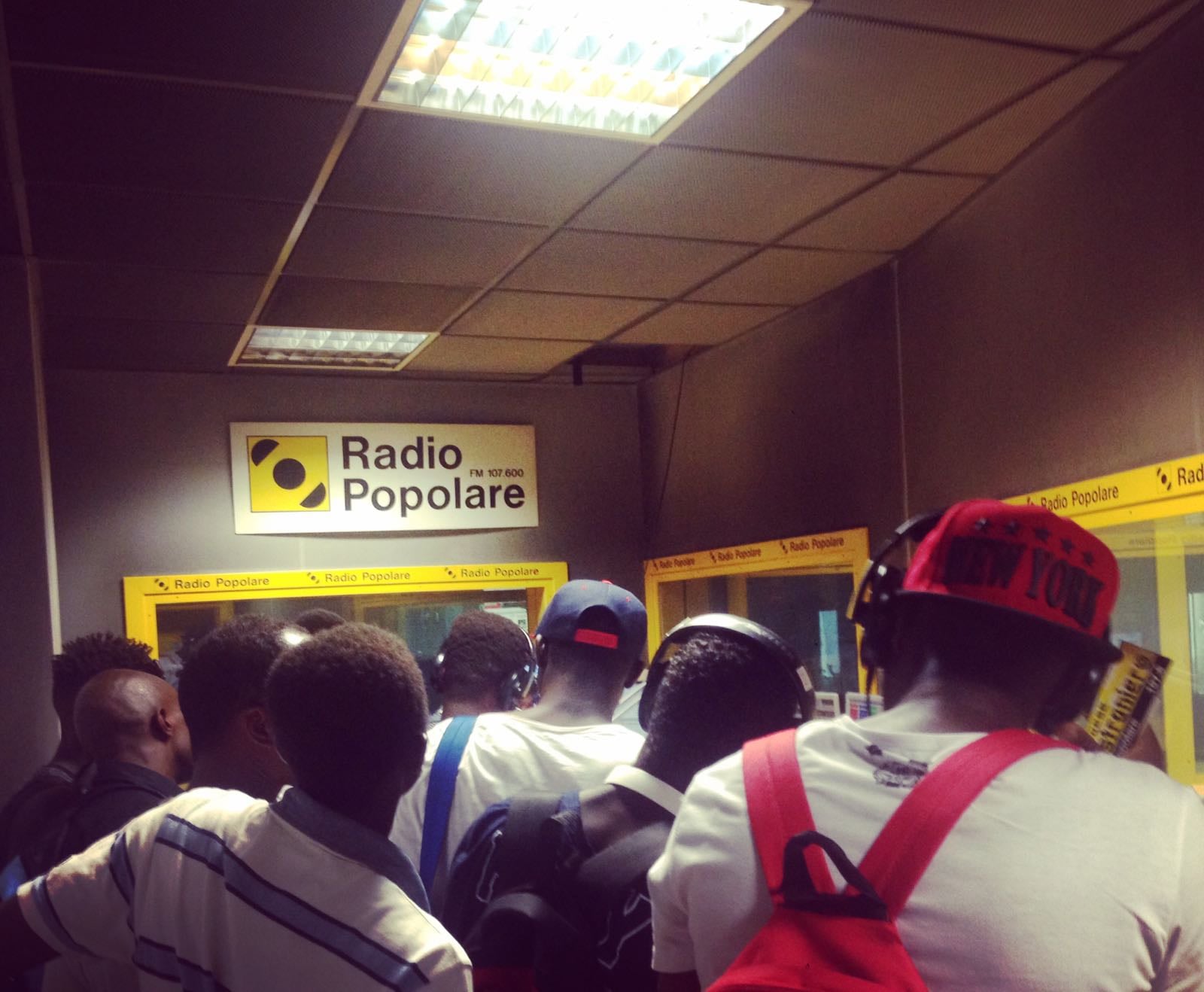 Sono arrivati in dieci, a metà di un pomeriggio di agosto, in visita a Radio Popolare. Giovani, allegri, interessati, tutti africani: ghanesi, nigeriani, eritrei, qualcuno dalla Costa d’Avorio e dalla Sierra Leone. Vivono a Milano, sparpagliati nei centri di prima accoglienza di via Aldini, via Corelli, Cascina Gobba. Si sono conosciuti alla scuola estiva di italiano ospitata dall’oratorio di Santa Maria Beltrade, zona viale Monza. Il più giovane, Moussa, ha 19 anni, gli altri solo qualcuno in più. La radio li affascina: guardano, fotografano, filmano, qualcuno prende appunti. Provano microfoni e cuffie, ridono. Ibrahim, 22 anni, a un tratto si fa serio. Ci pensa un po’ e poi chiede se può registrare una canzone. E’ un appello – dice in inglese – e vorrebbe che lo sentissero in tanti e lo facessero arrivare a tutti gli africani. E’ un appello cantato in modo sommesso ma deciso: africani non partite, africani non andate in Libia. Il viaggio è pericoloso, troppo pericoloso, si rischia di morire. Ibrahim è partito dalla Sierra Leone, via da una situazione politica insopportabile. In Libia è stato costretto per più di un anno, spedito in quattro prigioni diverse. E’ lì, meditando sul mio viaggio, che – spiega -ho pensato alle parole di quella canzone. E adesso che è in una radio ha trovato il modo di farla sentire, sperando che arrivi a tanti che ancora non sono partiti.