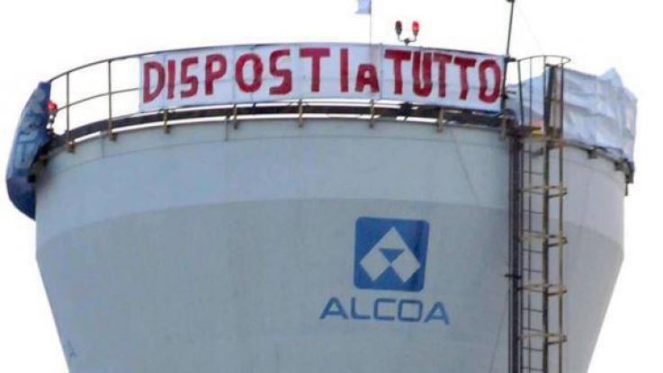 Alcoa, la protesta sul silos: “Il governo agisca”