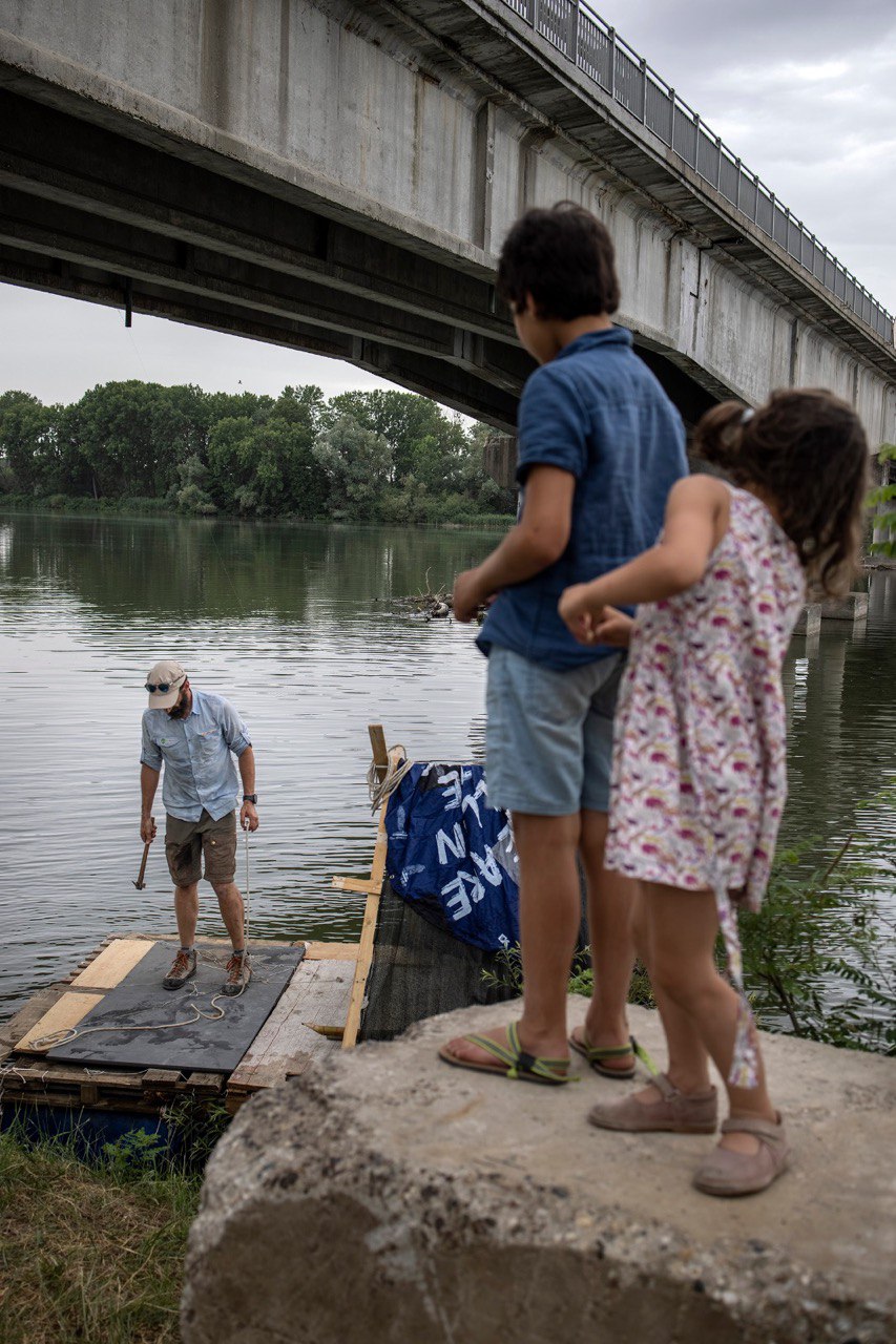 Siamo sicuramente siamo simpatici, perché ci hanno sempre trattato bene. La navigazione continua tranquilla. Oggi siamo a Boretto. Ieri siamo stato raggiunti da un piccolo comitato di accoglienza. È quasi un peccato lasciare questi paesi quando l’accoglienza è così calorosa. Abbiamo una missione da compiere. Dobbiamo portare questa zattera verso il Delta. Una volta arrivati a destinazione la zattera verrà smantellata e consegnata nelle mani di un artista, che la trasformerà in una panchina da donare alla città di Trieste.