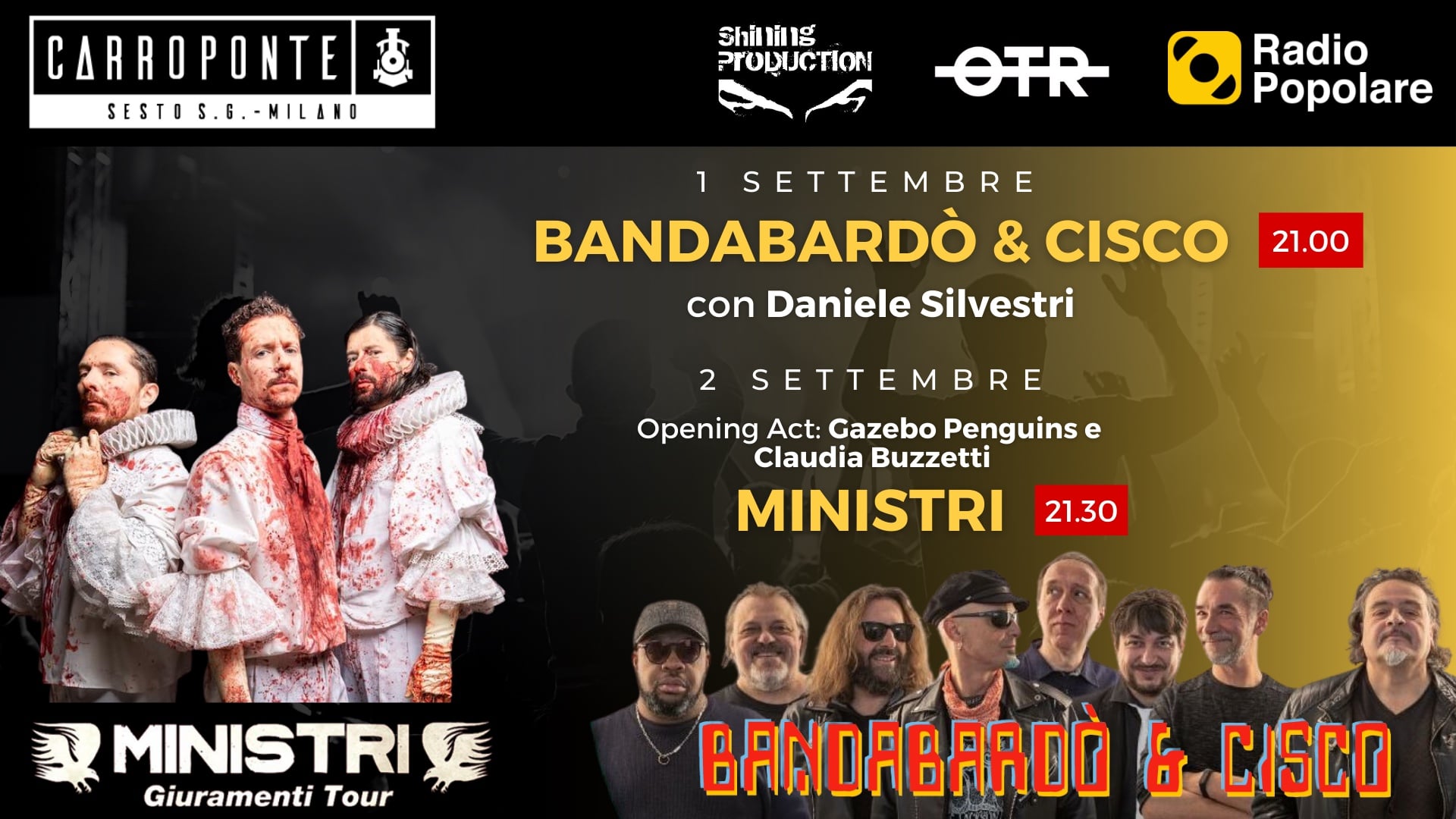 Una band icona carismatica e trascinante, vero punto di riferimento della scena italiana, “I Ministri”, è pronta a ruggire dal palco del Carroponte con i successi storici e l’ultimo album “Giuramenti”; con loro, nella stessa serata ci saranno special guest i “Gazebo Penguins”: il 2 settembre sarà una serata che si prospetta essere una vera celebrazione del rock made in Italy.
