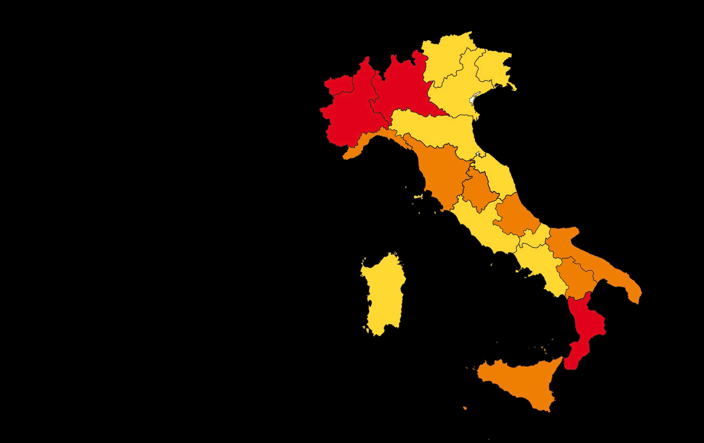 Nessuna regione negli ultimi dieci giorni ha portato alla cabina di regia, formata da ministero della Sanità e regioni, dati positivi da poter passare ad esempio da arancione a gialla o da rossa ad arancione.