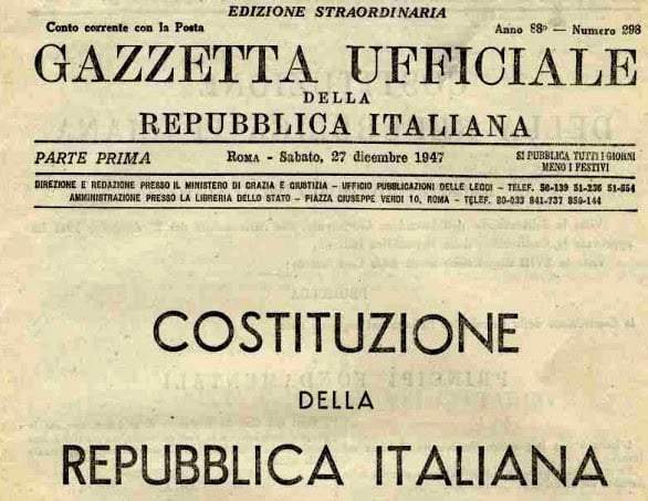 L’immagine è famosissima. Il presidente del consiglio Alcide De Gasperi, il presidente dell’Assemblea Costituente Umberto Terracini, il Capo provvisorio dello Stato Enrico De Nicola, tutti attorno a un tavolo, firmano la Costituzione della Repubblica italiana. Quella fotografia rappresenta la sintesi delle culture democristiana, comunista e liberale che, dopo la Resistenza, si erano unite per il rilancio dell’Italia. La carta costituzionale, approvata cinque giorni prima, venne ufficialmente promulgata. Pubblicata urgentemente sulla Gazzetta ufficiale il giorno stesso, entrò in vigore il primo gennaio del 1948. “La scrittura della Costituzione fu il grande momento di rinascita dello Stato italiano”, dice Gaetano Azzariti, professore di diritto costituzionale all’Università La Sapienza di Roma.