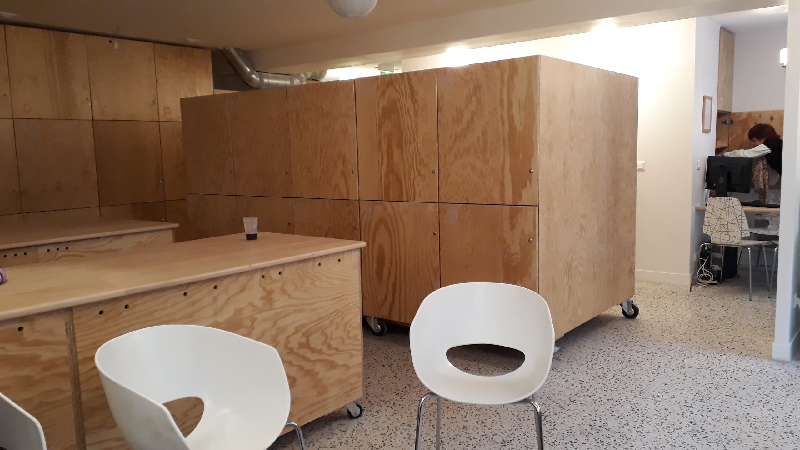 Lo spazio, 70 metri quadrati messi a disposizione dal municipio, è pulito, luminoso e ordinato. Le pareti sono ricoperte da dei grandi armadietti in legno, 44 in tutto. Ma ci sono anche delle sedie e dei tavoli, più due grossi banconi che vengono usati per fare la cernita degli oggetti da lasciare in custodia : “Siamo stati meticolosi nella scelta dell’armadietto. Sono grandi casiers che contengono molti effetti personali, con dei ripiani estraibili e modulabili che permettono di mettere in ordine le proprie cose, proprio come in un armadio. Quest’offerta permette di alleggerire le persone, che sono più libere di girare e anche di rassicurarle sullo stato delle loro cose. Perché praticamente tutti hanno subito dei furti.”