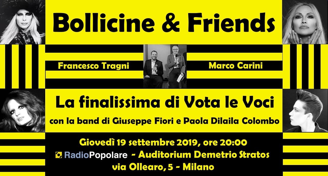 L’ultimo evento musicale dell’estate di Radio Popolare: dopo aver proposto durante le puntate domenicali di Bollicine il meglio della produzione canora al femminile degli ultimi 50 anni, siamo arrivati alla finalissima della kermesse “Vota le voci”. Sul palco dell’Auditorium Demetrio Stratos, in via Ollearo 5, giovedì 19 ci sarà un evento unico dove potrete non soltanto ascoltare riproposte dal vivo le canzoni che avete selezionato voi ascoltatori, ma anche votare la “miglior canzone al femminile italiana” tra le 10 finaliste (tra cui Pensiero Stupendo, Un’estate al mare, Insieme a te non ci sto più e tante altre).