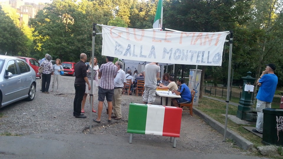 L’hashtag è #giùlemanidallamontello, le pagine facebook Caserma Montello ai milanesi e No ai profughi alla Caserma Montello. Sono i cittadini che vivono in zona 8 a Milano nei pressi della Caserma Montello di via Caracciolo e che da una decina di giorni presidiano h24 l’ingresso della caserma. Hanno piazzato un gazebo fuori dal parco Tolentino e raccolgono firme contro l’uso temporaneo della caserma militare per ospitare i profughi. Una scelta presa da governo, Comune di Milano e Prefettura dopo che il presidente della Regione Lombardia Roberto Maroni è riuscito a impedire l’uso dell’ex campo base di Expo 2015 per l’accoglienza dei migranti. All’annuncio dello spostamento alla Montello, il leghista Maroni ha festeggiato definendo quanto successo “una vittoria”. In effetti con una mossa sola è riuscito a stoppare l’uso del campo base di Expo aprendo il primo vero fronte anti profughi dentro la città di Milano.