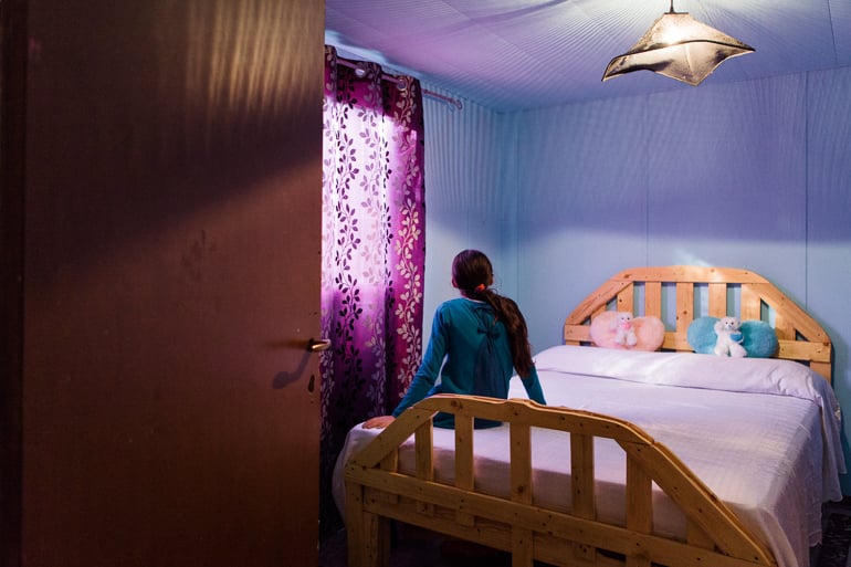 Con lui siamo andati a visitare la casa dove vivono Marina, Lisse e le loro bambine. Una struttura in legno affiancata a un container sistemato nel corso degli anni, in un cortile con alberi all’ingresso del campo. Un luogo precario e dignitoso, dove c’è tutta la vita di chi lo ha abitato e costruito.
