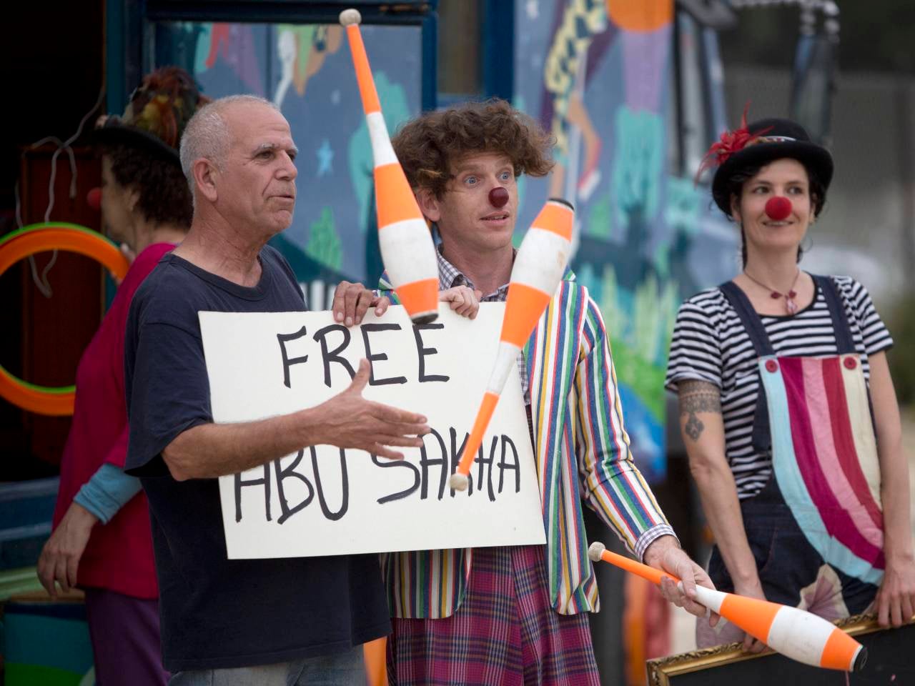 C’è anche una pagina Facebook gli artisti di tutto il mondo possono postare foto della loro protesta creativa, accompagnata dal cartello “Free Abu Sakha!” Un musicista statunitense ha scritto una canzone su di lui che recita: “Avrebbe potuto essere un combattente, come hanno fatto in molti. Invece ha scelto di unirsi a una compagnia circense per scaldare i cuori. A volte l’hula-hop è il miglior modo di fare la propria parte. Ed è il solo crimine che rende felici i bambini”.