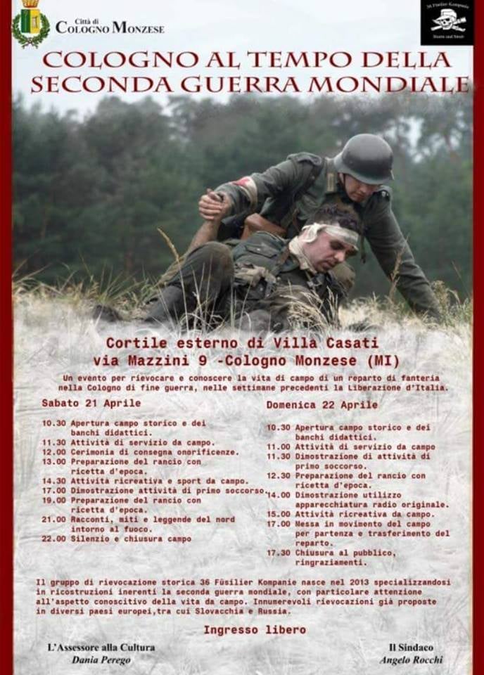 Sabato 21 e domenica 22 aprile, nella città a nord di Milano, si terrà una manifestazione organizzata dal gruppo ’36 Fusilier Kompanie’, associazione specializzata nelle rievocazioni storiche delle attività dei militari nazisti.