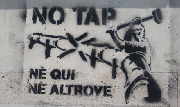 Intanto i vertici della società del Trans Adriatic Pipeline, hanno annunciato uno stanziamento di 200 mila euro per progetti proposti da onlus ed enti non profit pugliesi. Al tempo stesso però una bandiera sventola a nord, su una cima della Val di Susa…