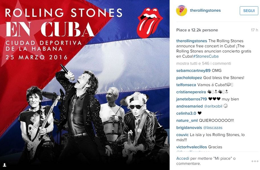 Anche i Rolling Stones, in ritardo con la storia, hanno deciso di venire all’Avana a suonare il prossimo 25 marzo. Il mega palco è già montato, si prevede un affluenza record per Cuba, nonostante la maggior parte dei cubani non conosce i Rolling Stones. Il rock a Cuba, bandito nei decenni passati dai circuiti culturali ufficiali, è ancora oggi un genere poco popolare e di nicchia. Ma questo non importa. Oggi i cubani hanno voglia di partecipare, di conoscere e essere presenti. E vivono gli eventi recenti con curiosità e speranza, ma senza ingenuità. “Mi fa piacere che Obama venga a Cuba, ma non credo che si tratti di amicizia, ci sono interessi dietro a questa scelta…”, commenta una giovane studentessa universitaria.