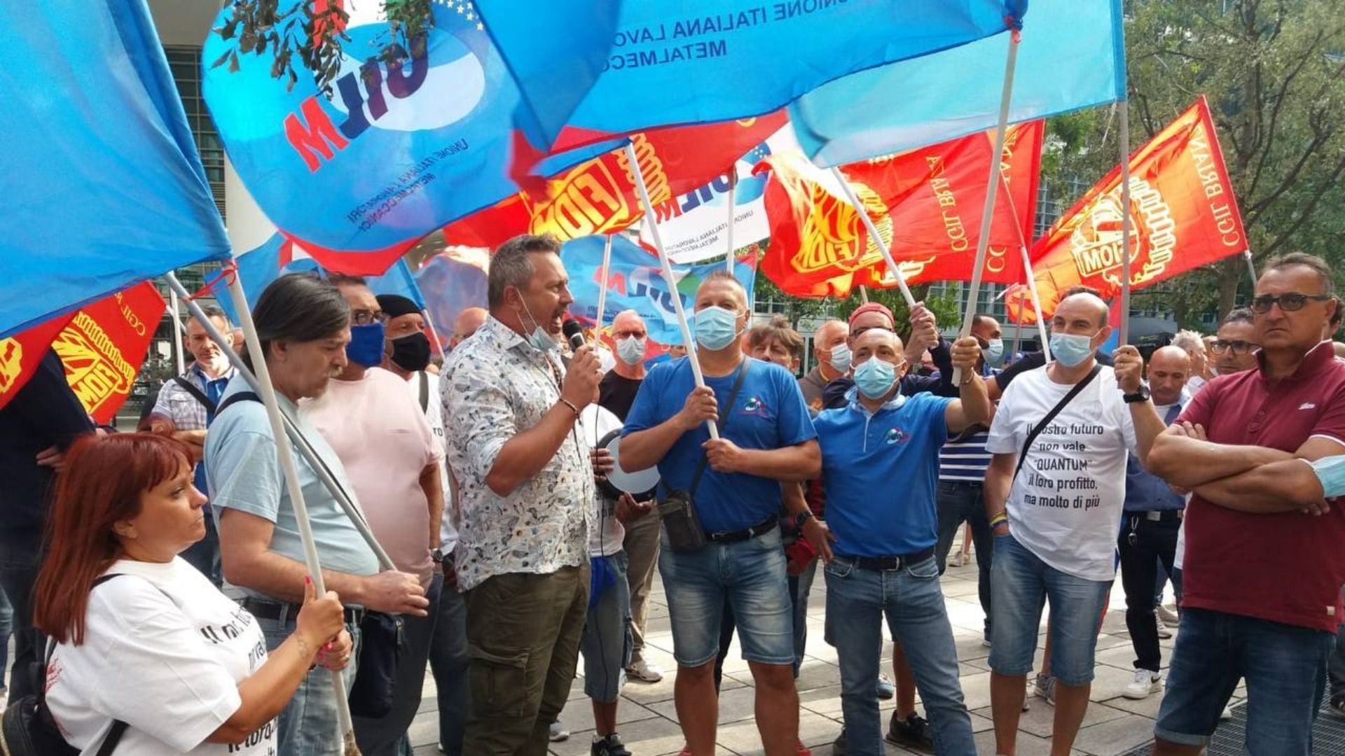 Foto | Il presidio dei lavoratori della Gianetti Ruote, la prima delle fabbriche a licenziare dopo lo sblocco dei licenziamenti