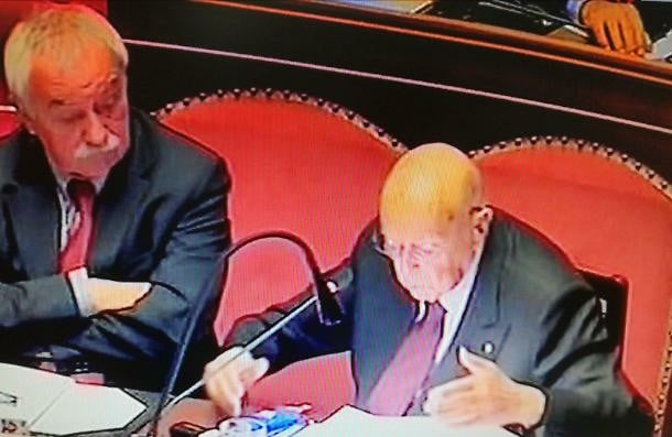 “Il voto ha bocciato l’auto esaltazione dei governi” ha scandito il presidente emerito mentre Renzi, in silenzio, lo ascoltava seduto sul suo nuovo scranno da senatore.