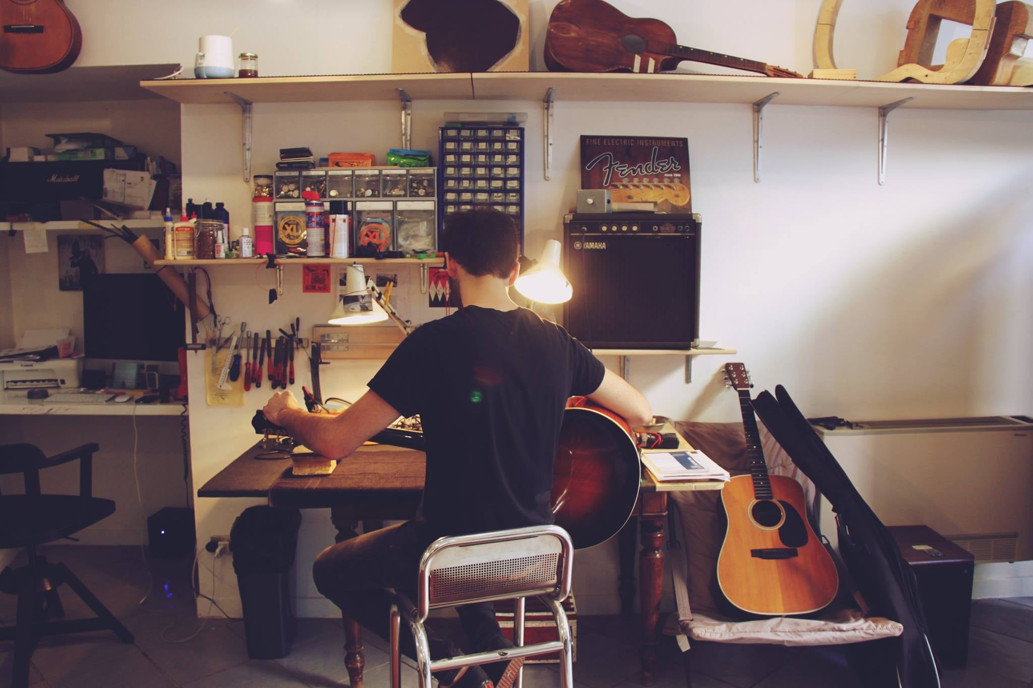 Se è vero che la stragrande maggioranza degli strumenti musicali (chitarre e bassi, in questo caso) è realizzata industrialmente, è vero anche che gli strumenti, soprattutto se in mano ai professionisti, prima o poi vanno riparati. E poi sopravvive una nicchia di produzione artigianale.
