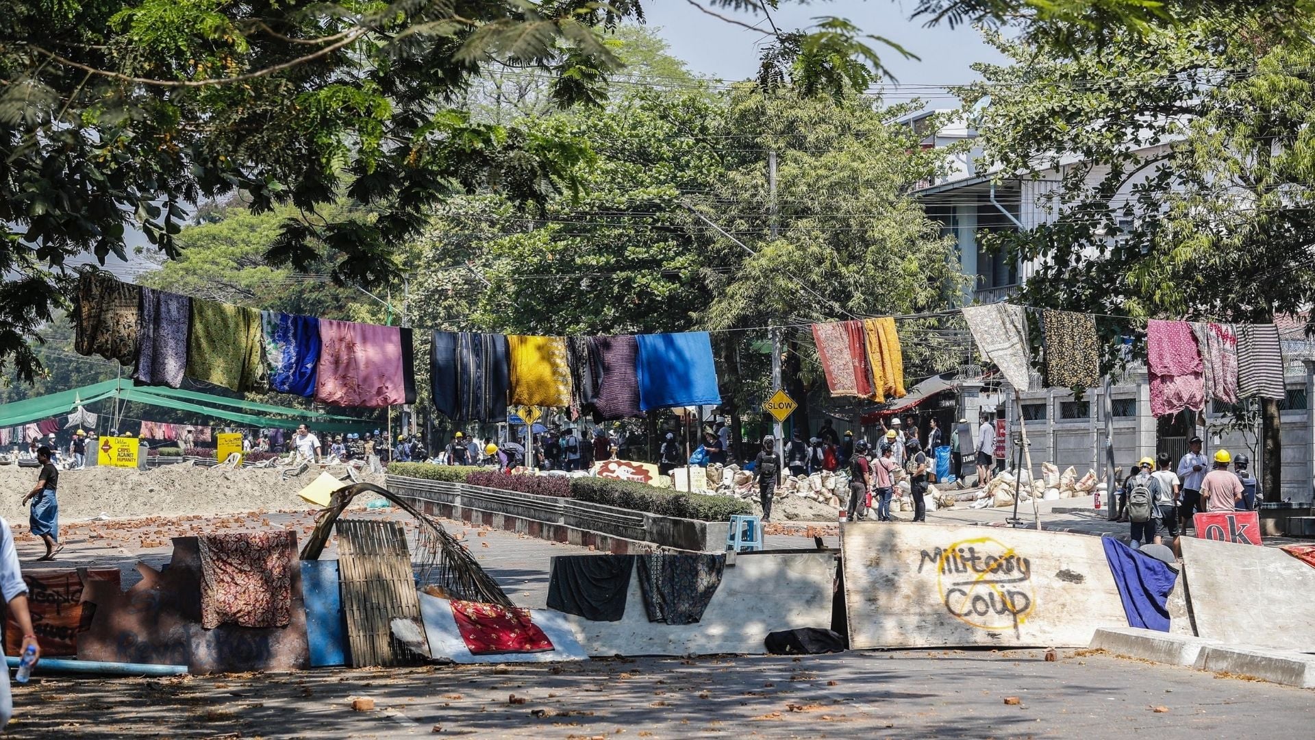 Quest’anno l’8 marzo, la giornata internazionale delle donne, è caduto nel bel mezzo del colpo di stato militare, ma le femministe birmane non hanno lasciato che la giornata passasse sotto silenzio. È partita da lì la Htamein Revolution. Lo Htamein è un vestito tipico delle donne birmane, una sorta di gonna colorata che si lega intorno alla vita. L’8 marzo, le strade delle città si sono riempite di Htamein colorati: appesi alle finestre, ai fili della corrente e anche a bastoni, come bandiere. Gli Htamein sono diventati un simbolo delle donne in lotta, ma anche di come una società che discrimina le donne, alla fine, si può rivoltare contro agli uomini stessi: secondo una leggenda popolare e maschilista, l’uomo viene privato della sua mascolinità quando entra in contatto con i vestiti delle donne. Per questo, gli Htamein appesi per strada si sono trasformati in barricate: i militari – che sono tutti uomini – tentennavano quando dovevano passare sotto le ghirlande di Htamein, e si tenevano alla larga.