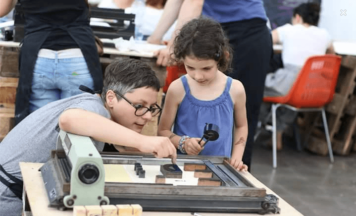Poi a Maria è venuta un’idea, che funziona. Spiegare ai bambini. O meglio, farli giocare imparando. Giocare coi caratteri, con i segni grafici, con l’inchiostro. Sembra complicato ma i bambini lo capiscono benone, tanto che i suoi laboratori sono molto richiesti.