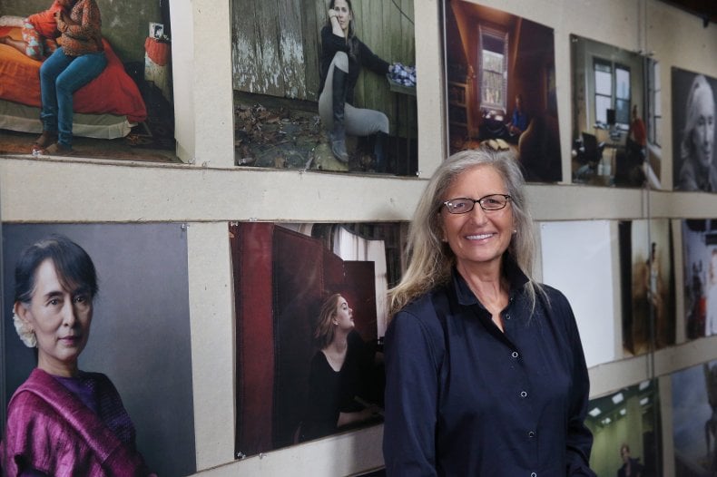 La Leibovitz, notissima e amata fotografa, è nata nel 1949. Le sue fotografie cominciarono ad apparire su Rolling Stone, che negli anni Settanta era una rivista giovane ed emergente di politica e cultura popolare; quindi su Vanity Fair e poi su Vogue. Le sue opere sono esposte nei più prestigiosi musei del mondo. Ha collezionato numerosi premi, è stata fotografa privilegiata di Patti Smith e Yoko Ono; sua è la celeberrima immagine di John Lennon nudo avvinghiato a Yoko Ono scattata poco prima che venisse ucciso.