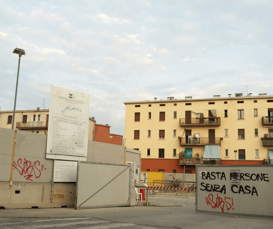 Le finestre che affacciano su via Odazio e su via Lorenteggio al numero 179 sono murate da mattoni e cemento. Questo civico sarà abbattuto e ricostruito, occupanti storici e famiglie a cui è stato riconosciuto lo stato di necessità hanno trovato per il momento casa altrove. Nel quadrilatero popolare del Giambellino, da anni la riqualificazione procede lenta, quasi a passo sul posto. Decine di milioni di fondi europei, integrati da Regione Lombardia e Comune di Milano, dovrebbero ridisegnare abitazioni, spazio pubblico e socialità. In via Segneri, il cantiere della M4 è rivestito da un elegante pavimento in pietra. Intorno ci sono lampioni di design, sono progettati per integrare strumenti di alta tecnologia. A pochi metri, nelle cantine delle case Aler occorrerebbero invece lavori ben diversi, le manutenzioni mancano da tanto, troppo tempo.