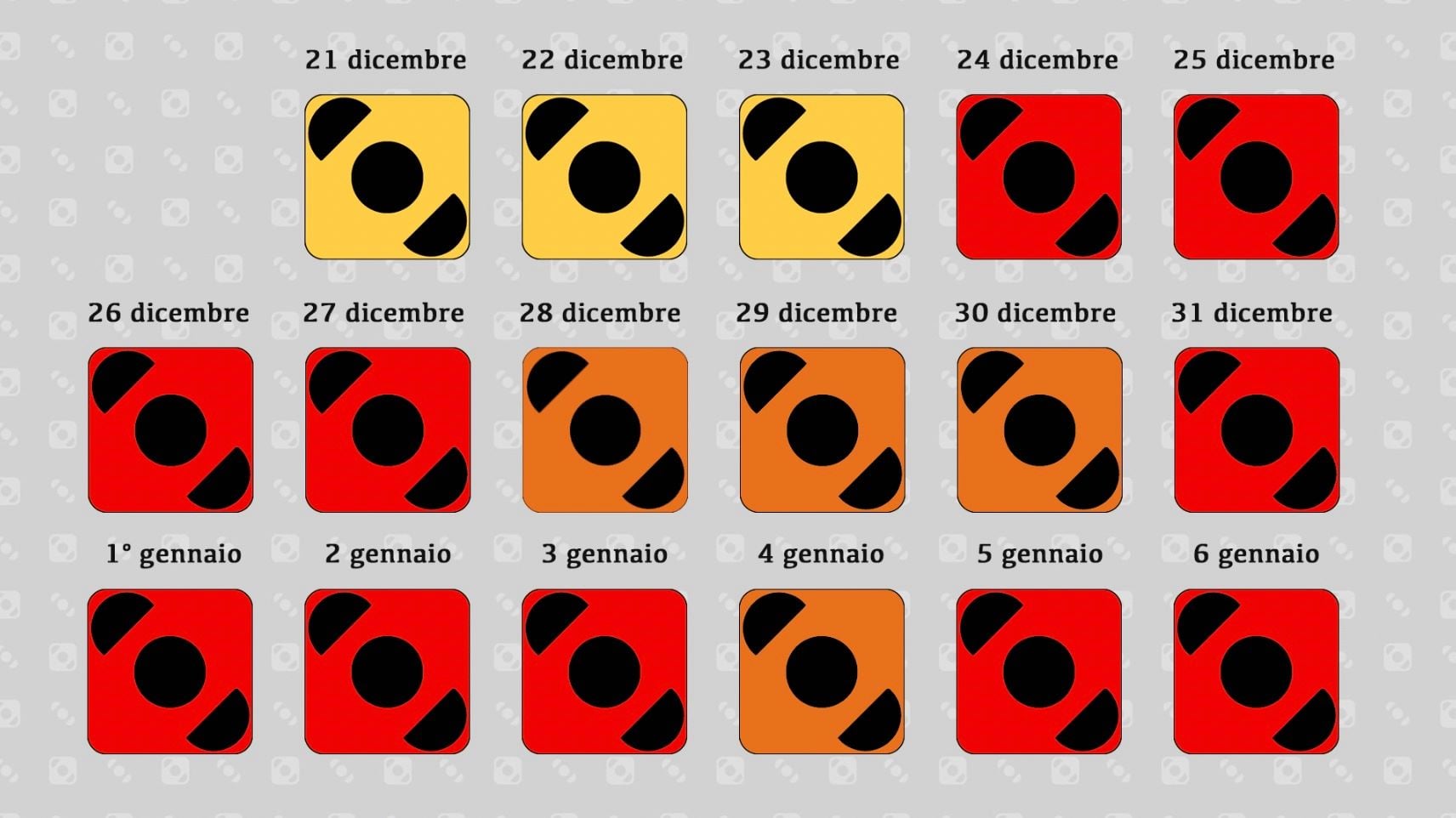 24, 25, 26, 27 e 31 dicembre 2020