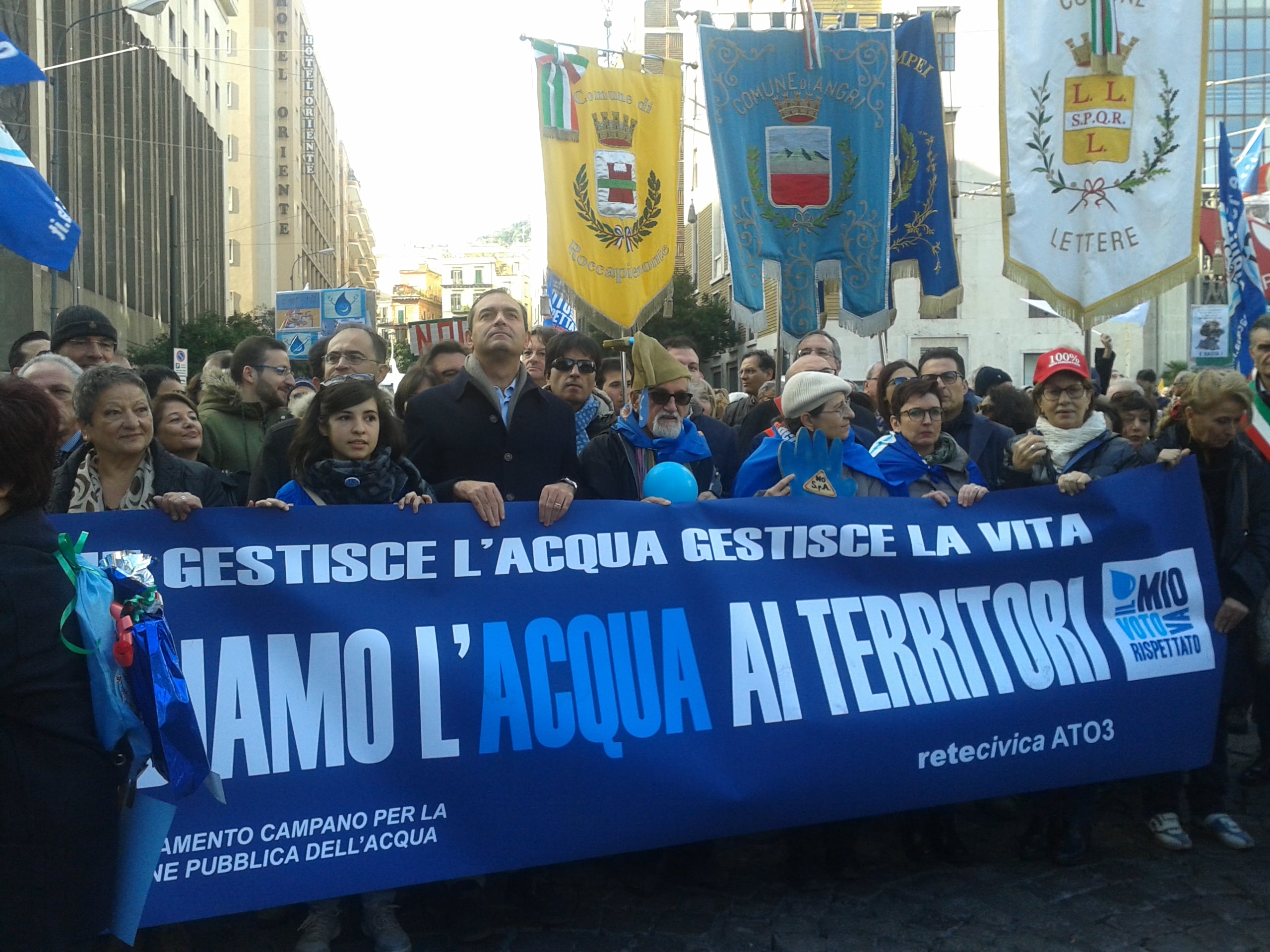Sotto lo slogan Acqua bene comune. Cambiano la legge, si sono ritrovate diverse migliaia di persone arrivate dalle varie province della Campania, il Coordinamento campano acqua pubblica, cittadini, decine di sindaci dei diversi comuni campani.