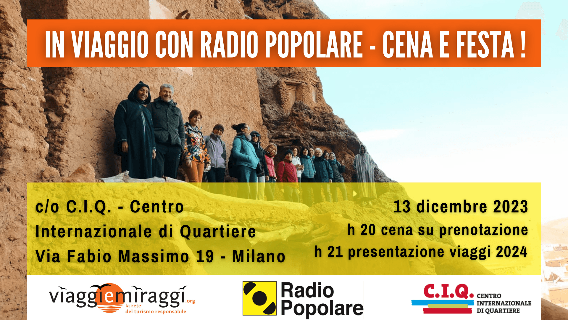 Torna la festa dei viaggiatori di Radio Popolare e ViaggieMiraggi.L’appuntamento è il 13 dicembre 2023 presso Cascina Casottello, in via Fabio Massimo 19 – 20139 Milano (M3 Porto di Mare).