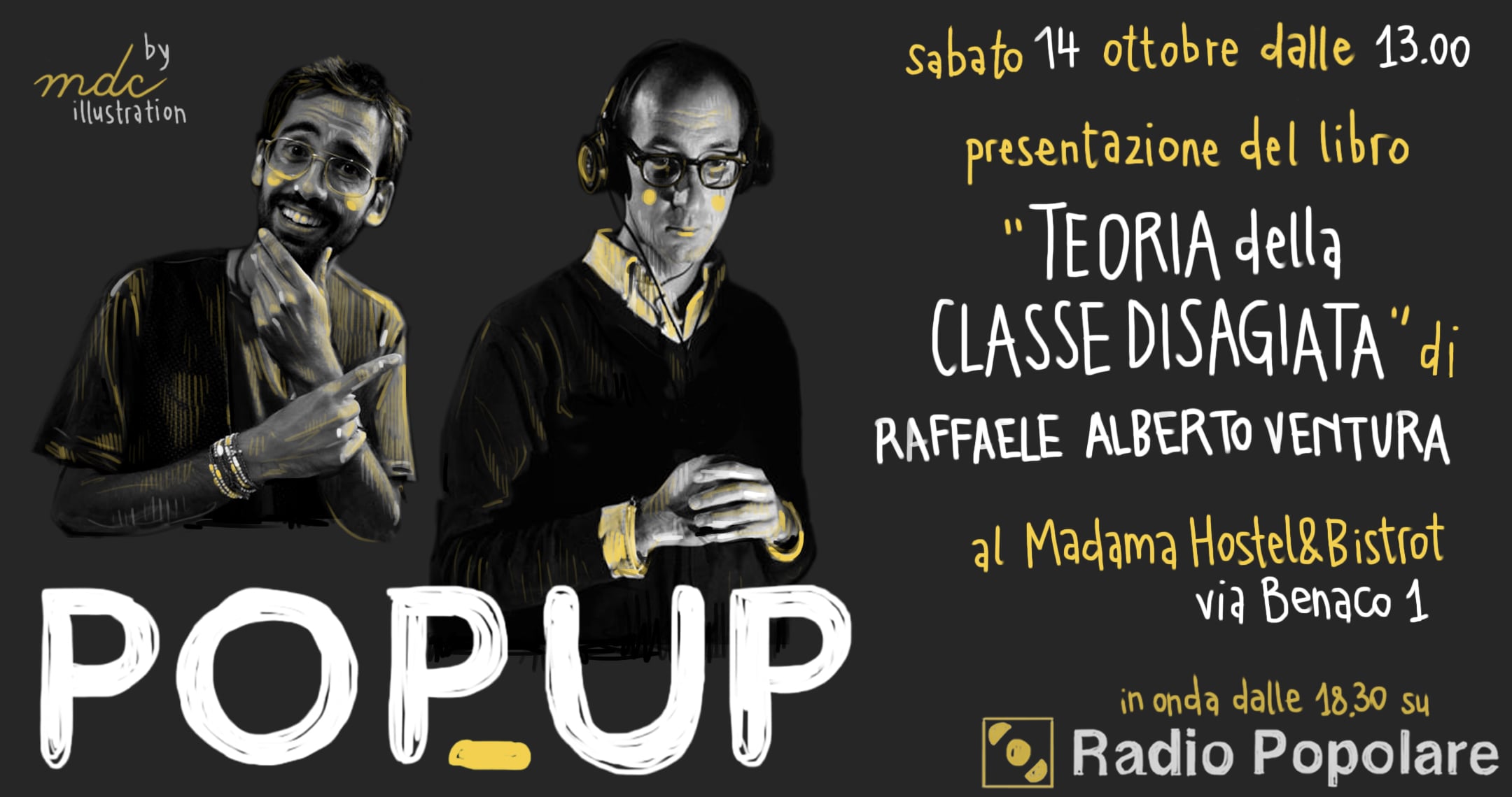 Sabato 14 ottobre PopUp registra al brunch dalle 13.00 alle 15.00 al Madama Hostel in via Benaco 1 e con il giovane filosofo Raffaele Alberto Ventura discute ragioni e cause del declino della classe media.