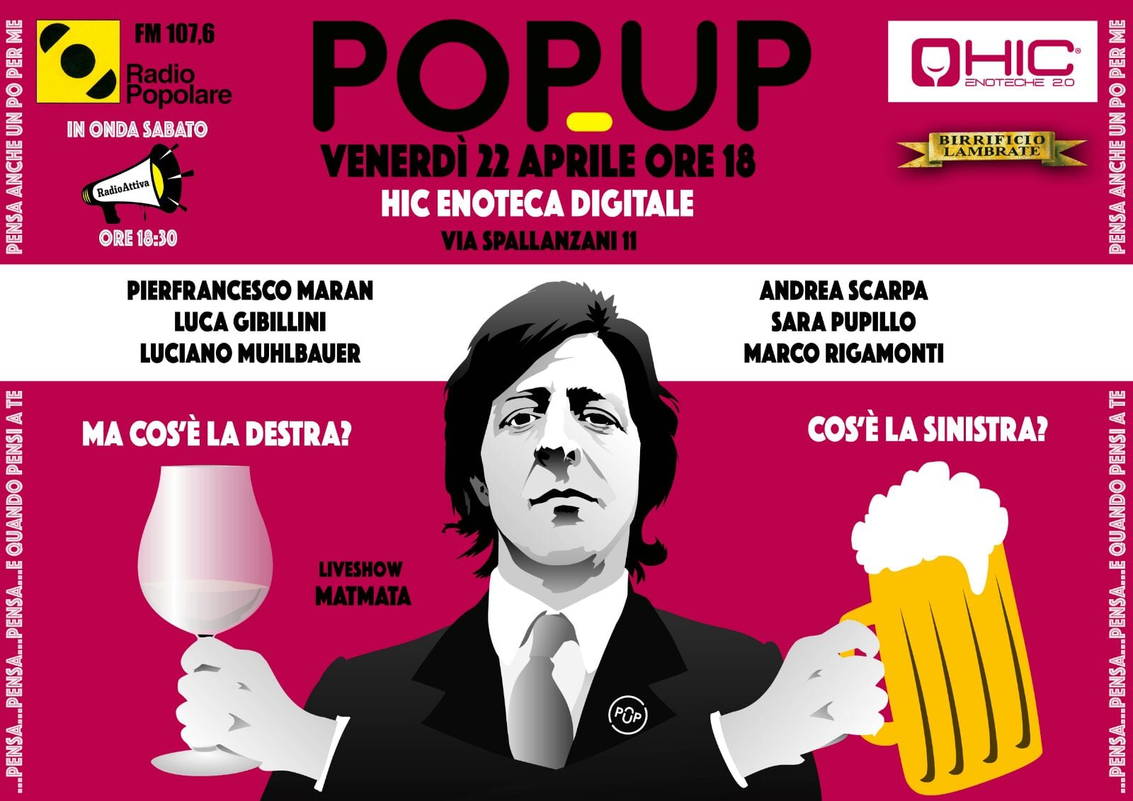 PopUp questa settimana registra venerdì 22 aprile dalle 18 all’enoteca Hic in via Spallanzani 11.