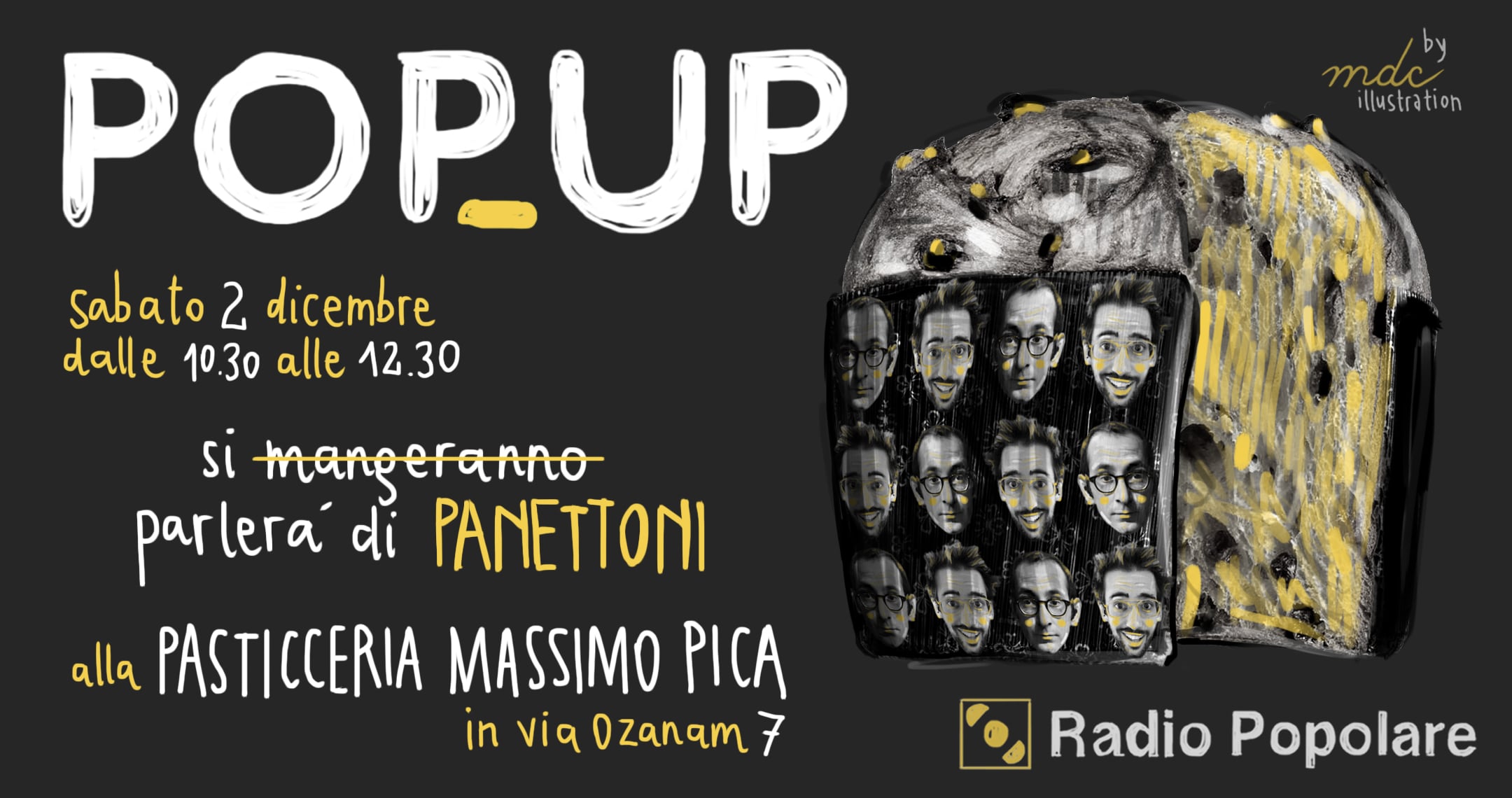 Si comincia alle 10.30 in Via Ozanam 7, Milano, alla Pasticceria Massimo Pica con degustazione di panettoni artigianali, con la social street di via Morgagni e con la presenza di Alessandro Robecchi.