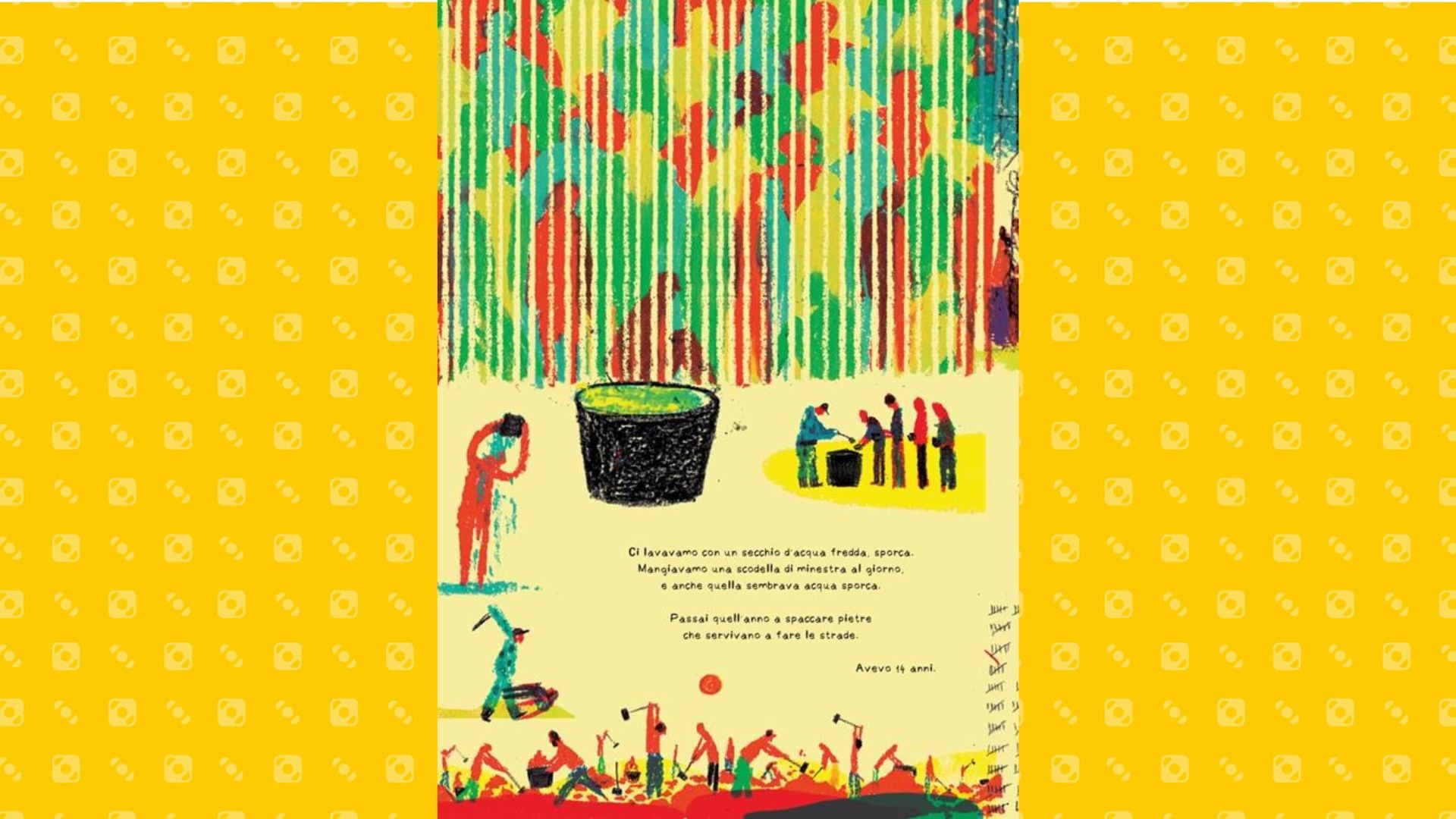 Il racconto riesce anche a strappare qualche sorriso grazie al suo stile asciutto e didascalico e all’uso ironico dei disegni. Come le coreografie a tutta pagina che creano i soldati che massacrano i manifestanti. O quel “paga” ripetuto come un mantra random dai trafficanti di esseri umani.