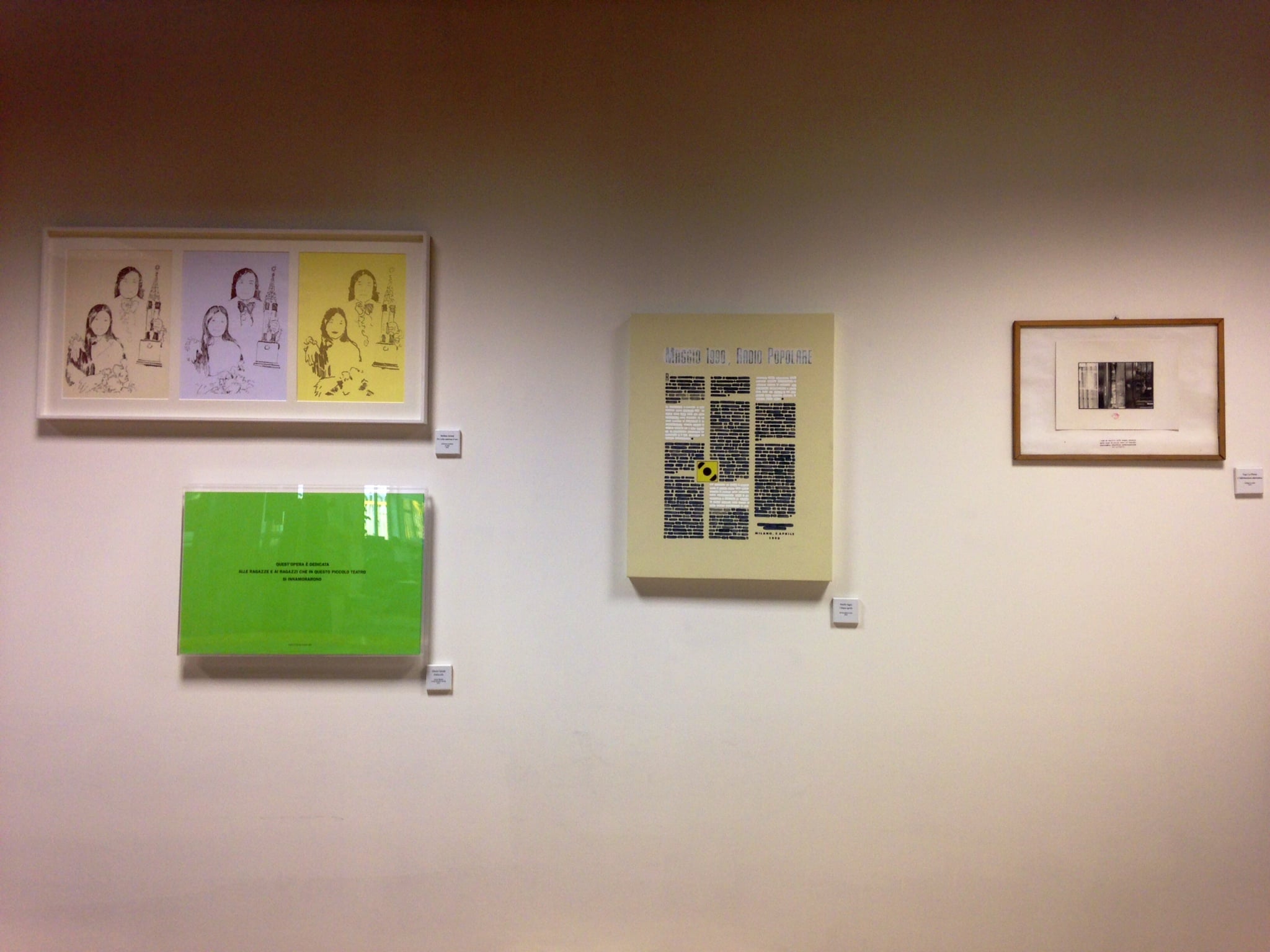 Abbiamo allestito la nostra piccola ma preziosa collezione nell’area riunioni in redazione perché la vista quotidiana delle opere dia energia e sensazioni piacevoli a noi lavoratori e alle ascoltatrici e agli ascoltatori che vengono a trovarci, soprattutto se abbonati. Infatti gli abbonati condividono la generosità degli artisti!