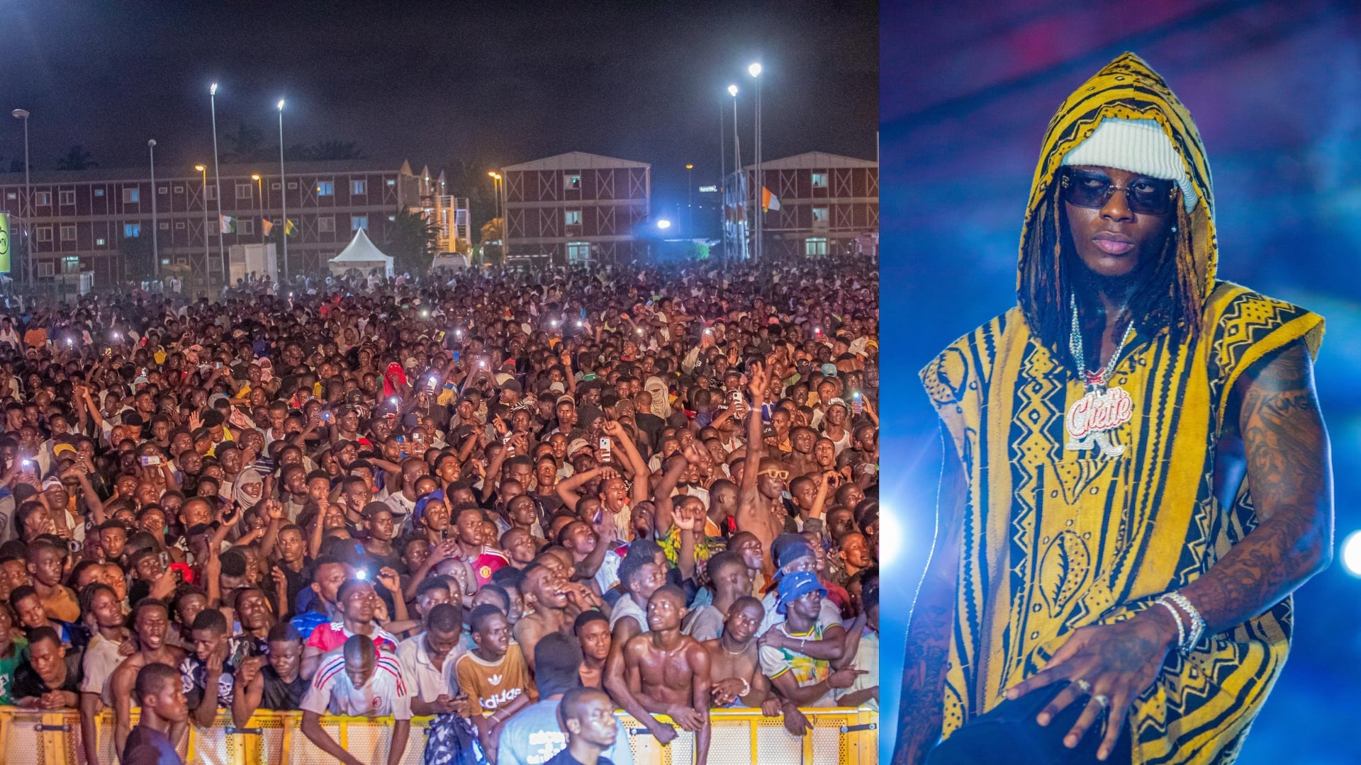 Himra inizia il suo show alle quattro meno un quarto del sabato mattina: i giovani, soprattutto maschi, molti a dorso nudo nel caldo umido della notte di Abidjan, sono arrivati in forze dai quartieri popolari e difficili. Fisico prestante, braccia muscolose tatuate, è da solo davanti a loro, con alle spalle due musicisti alla consolle, niente fronzoli e niente glamour: boati, scariche, colpi di batteria elettronica, sirene, un rap elettronico futurista, essenziale e a suo modo rigorista.