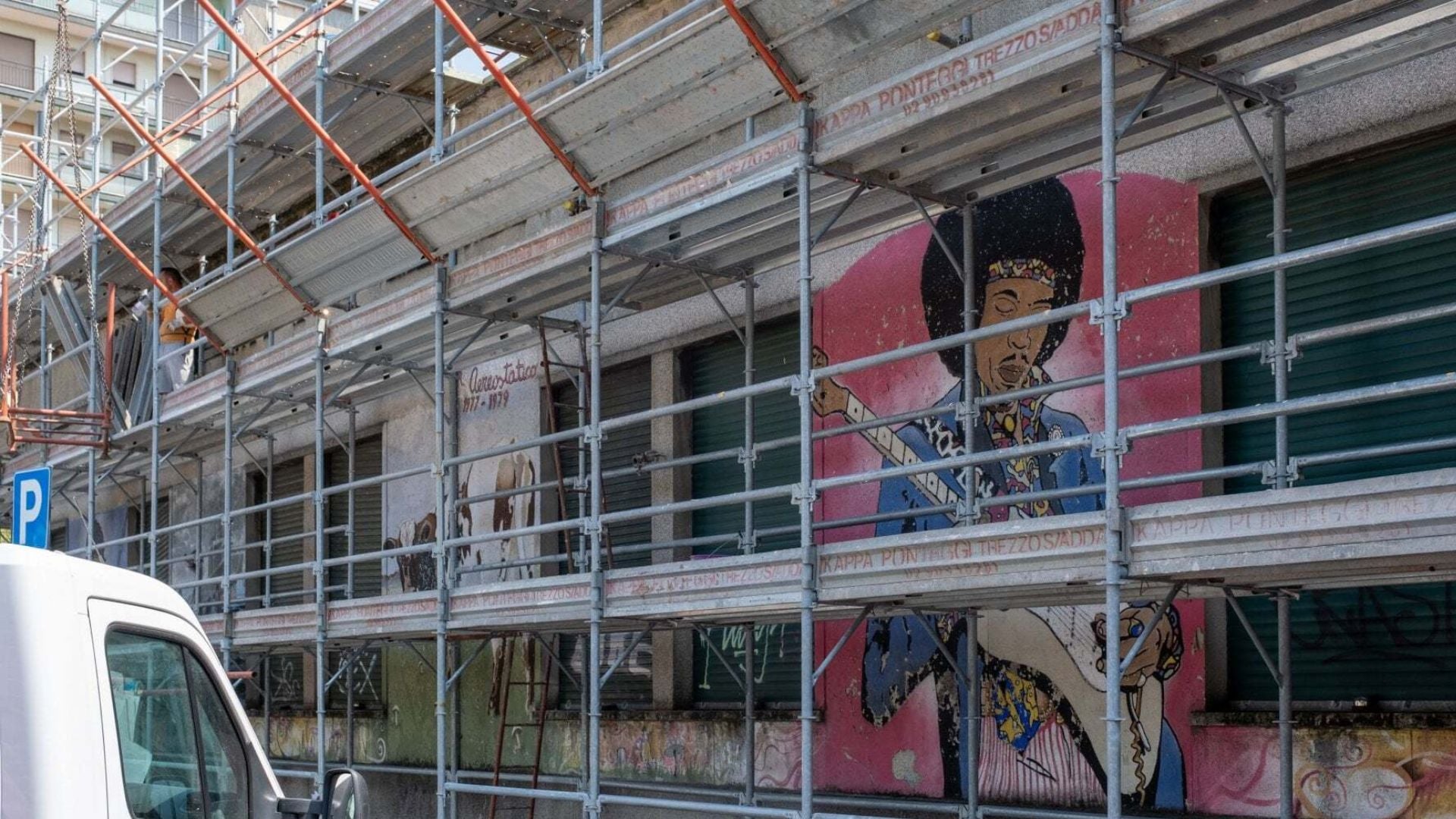 Il primo murales approvato è capo Wolf un indiano in puro stile prateria urbana come ce n’erano di bellissimi (e non ci sono più, per grande stupidità e insipienza) nella vicina via Sismondi, via Negroli e in Piazza Insubria. Si prosegue con Jimi Hendrix in memoria del primo e unico concerto a Milano del dio della chitarra nel maggio 1968, poi con un’altra citazione musicale la copertina dell’album Atom Heart Mother dei Pink Floyd, con la mucca in leggero rilievo dal muro che si volta e ti guarda; e infine col sole che ride e dice “energia nucleare no grazie”, probabilmente il primo simbolo della lotta antinucleare in Italia visto che, ci racconta Easy l’animatore del gruppo d’allora, il simbolo l’aveva portato dalla Germania uno dei ragazzi (per la cronaca il simbolo nasce in Danimarca nel 1975, le prime manifestazioni antinucleari in Italia proprio nel 1977 a Montalto di Castro “per riprendersi la vita” o per una “festa di primavera” come dicevano gli indiani metropolitani e il simbolo diventerà noto al grande pubblico nelle elezioni del 1985 grazie ai Verdi).