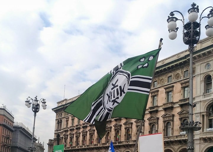 Siamo stati i primi ad incrociare Augusto in piazza, lo abbiamo intervistato, ci siam sorpresi anche noi di vedere quella bandiera di fronte al Duomo. Augusto ci ha detto quello che voleva dirci, il servizio d’ordine della Lega gli ha chiesto spiegazioni, lui ha risposto “non sono cose estremiste, è una cosa ironica legata al mondo del web”.