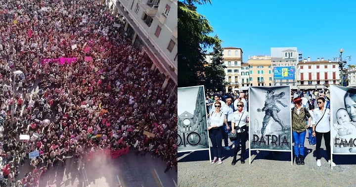 Il confronto tra le due piazze, la piazza di sabato del movimento Non Una di Meno, la piazza di domenica dei sostenitori del Congresso sulla Famiglia, è impietoso.