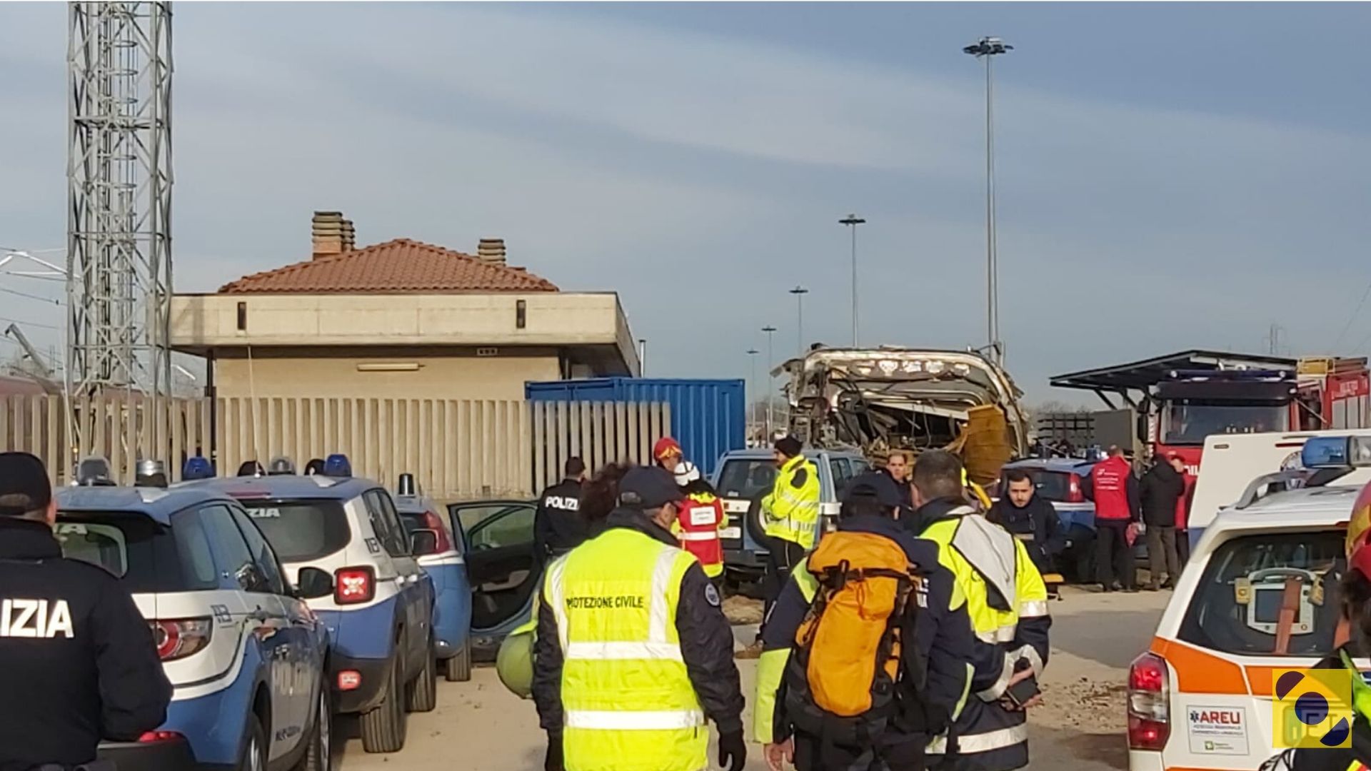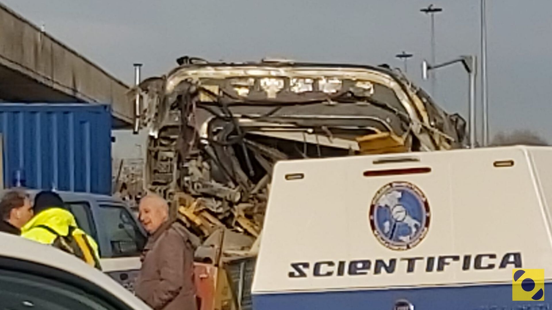 La motrice si stacca dagli altri convogli e dopo 3-400 metri percorsi sui binari paralleli, esce dal percorso e va a sbattere contro un casotto delle ferrovie. L’urto è così forte che si gira di 180 gradi, tanto che i soccorritori arrivati sul posto la troveranno con il muso girato verso nord, la direzione da cui proveniva.