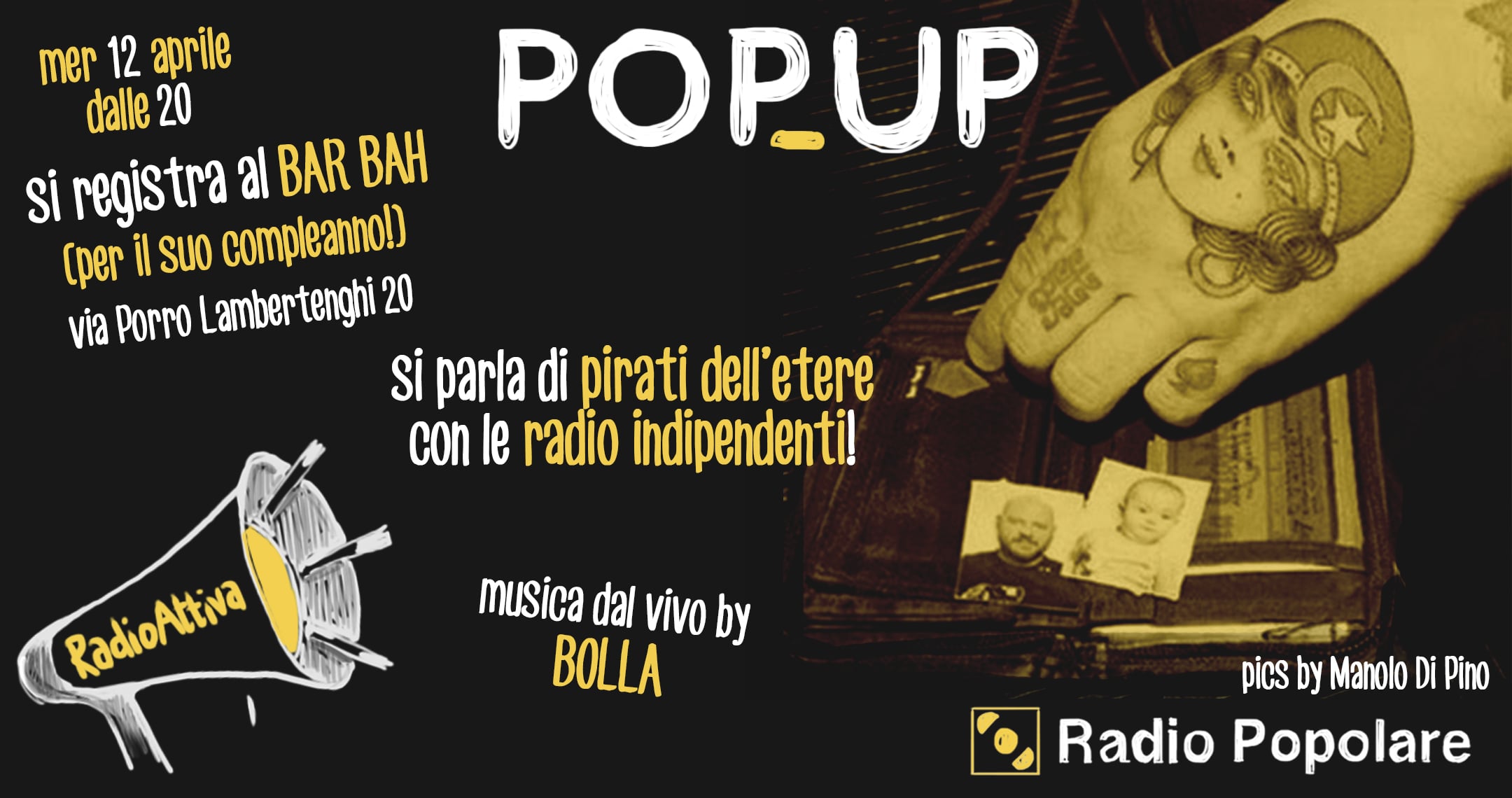 PopUp torna al Bar Bah, in via Porro Lambertenghi 20, per il primo compleanno del locale e registra mercoledì 12 aprile dalle 20 alle 22.