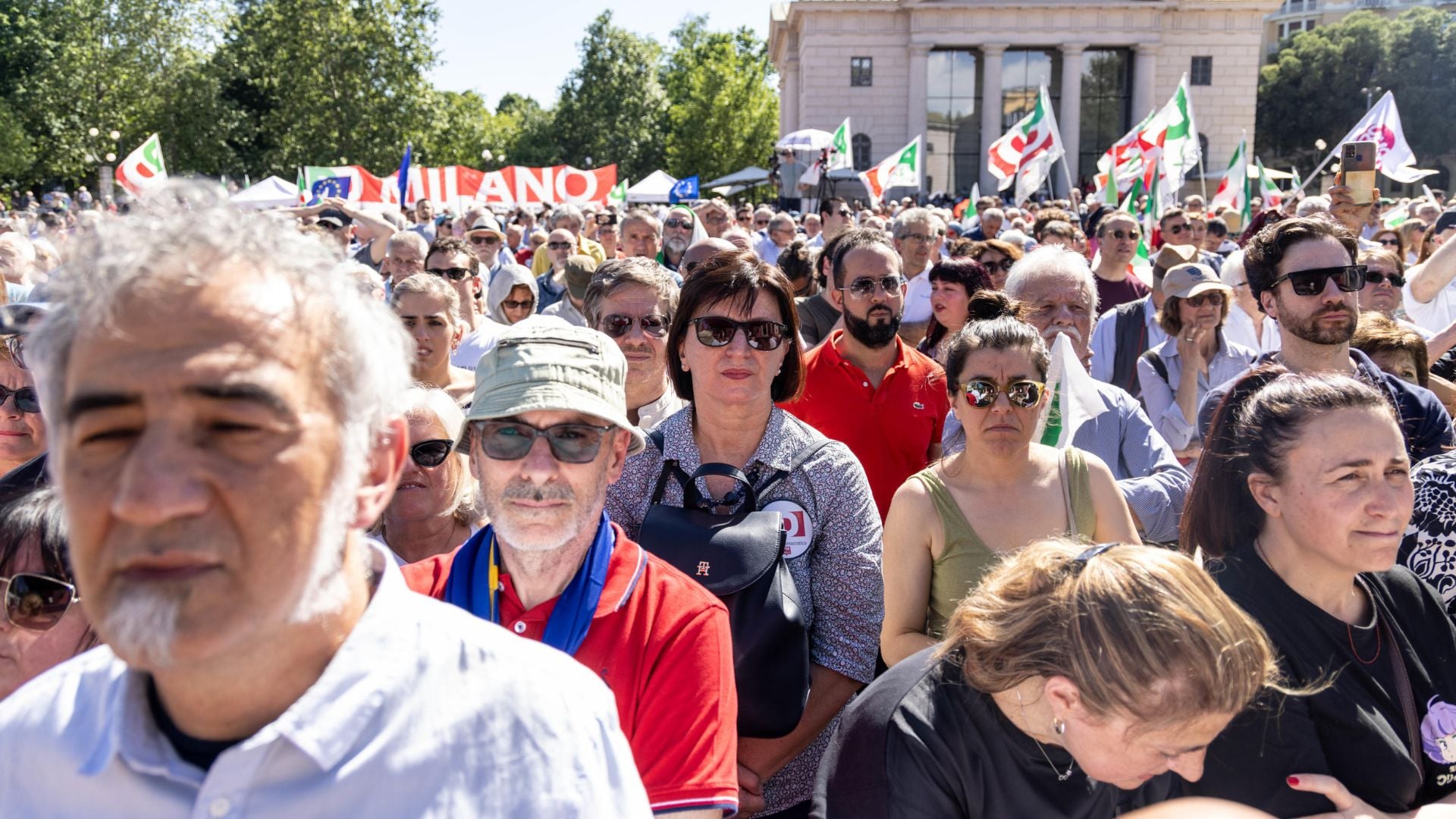 Di guerra, nella piazza Pd, si parla poco, dopo le polemiche suscitate da Marco Tarquinio. Le imbeccate contro l’altra piazza arrivano dal sindaco Sala, che cita l’orrore della Decima Mas. Poi Sala dice che vorrebbe Mario, nel senso di Draghi, e gli applausi sono timidi. Si infiamma la piazza Pd per Schlein, 20 minuti a braccio senza rifiatare. I temi classici, sanità, salario minimo, asili nido, conversione ecologica, e l’Europa, l’attacco a Orban preso come modello del sovranismo meloniano e salviniano. E punta Meloni: “Cancella la libertà delle persone”.