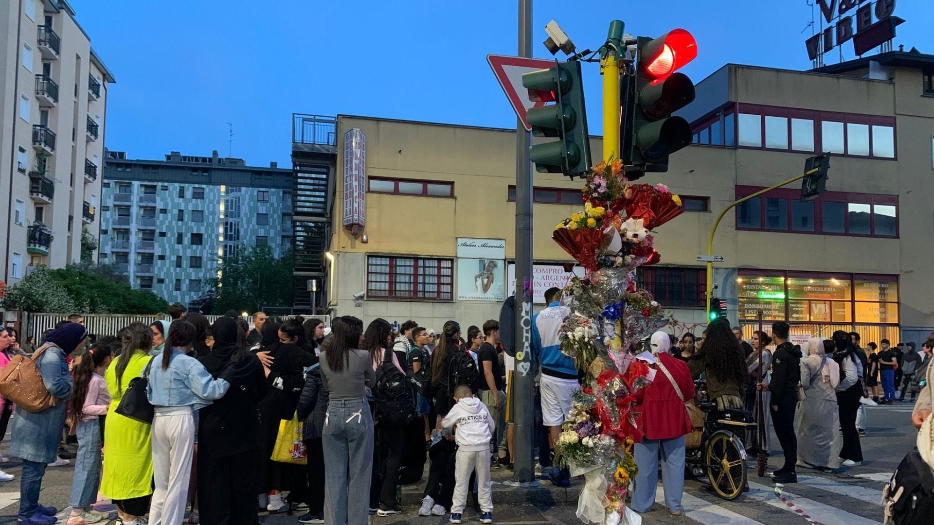Il corteo si è fermato prima intorno al palo dove ha perso la vita Moha. Attorno ai fiori lasciati in ricordo del ragazzo, si sono stretti i parenti e gli amici più stretti, coperti dagli striscioni. Chiedevano rispetto per il loro lutto. Ma il ricordo non si è fermato all’incrocio tra via Marco d’Agrate e via Cassano d’Adda. Il corteo ha proseguito fino al palo dove ha perso la vita Ramy.