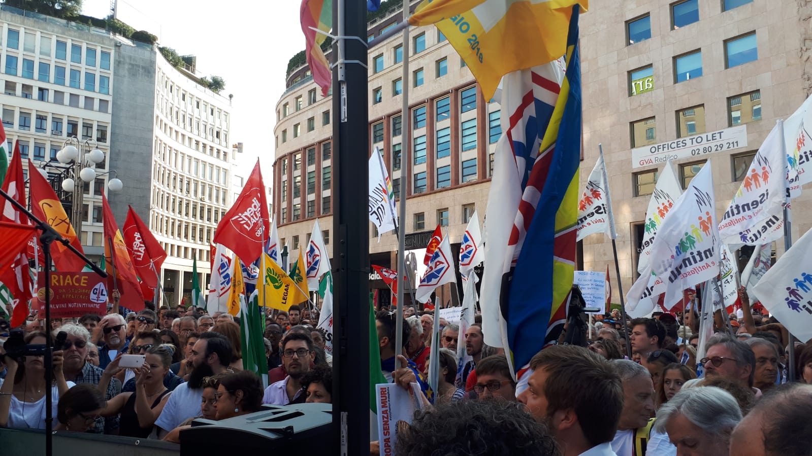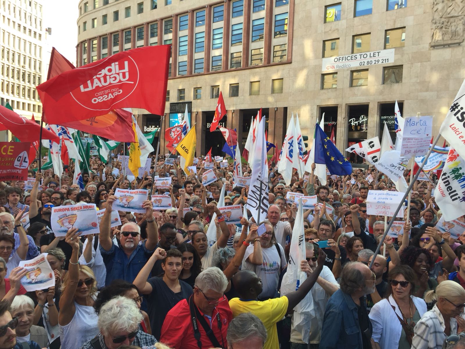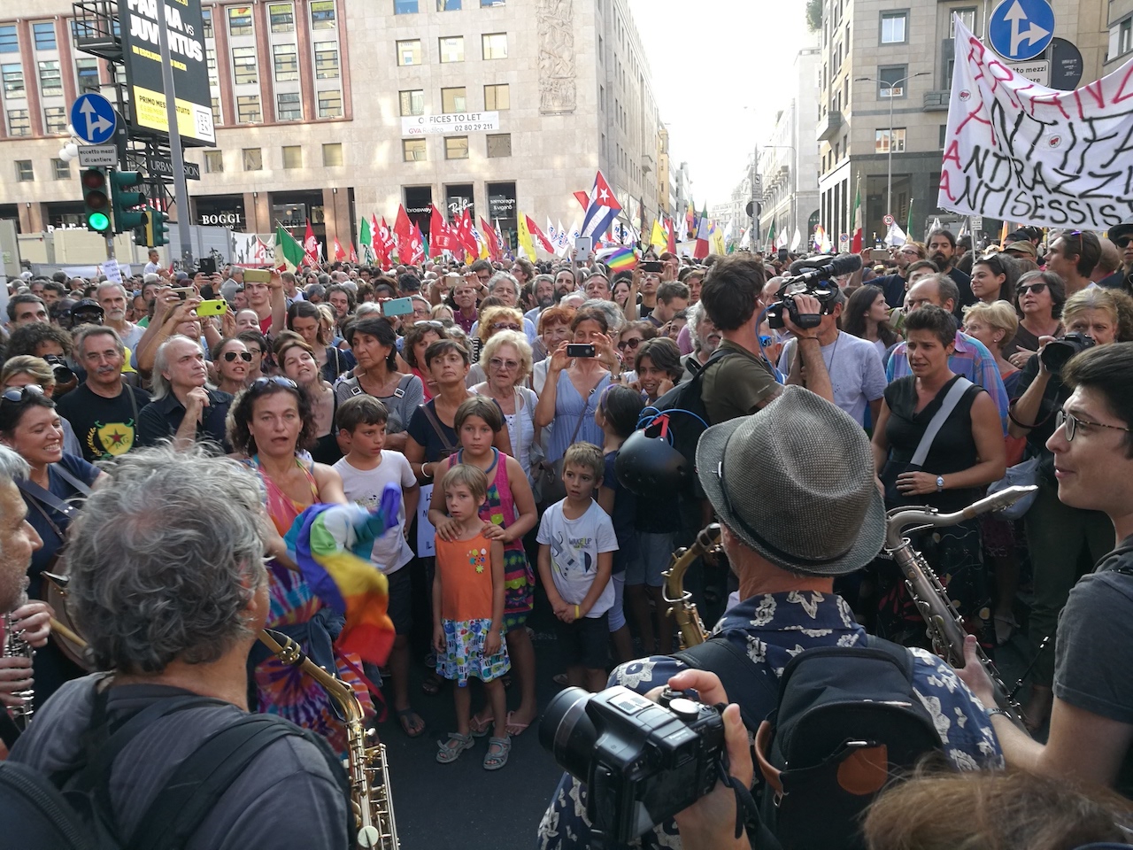 Migliaia di no all’Europa dei muri. Piazza San Babila a Milano si è riempita per contestare l’incontro tra Matteo Salvini e Viktor Orban. Il capo della Lega e il primo ministro ungherese potrebbero essere protagonisti di un asse di estrema destra alle elezioni europee del 2019.