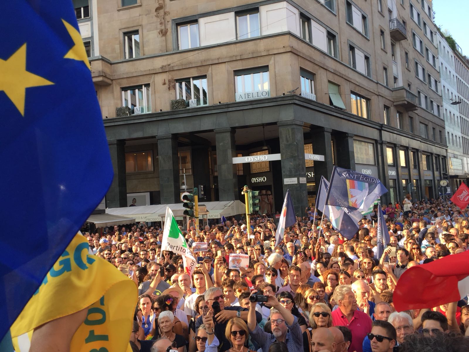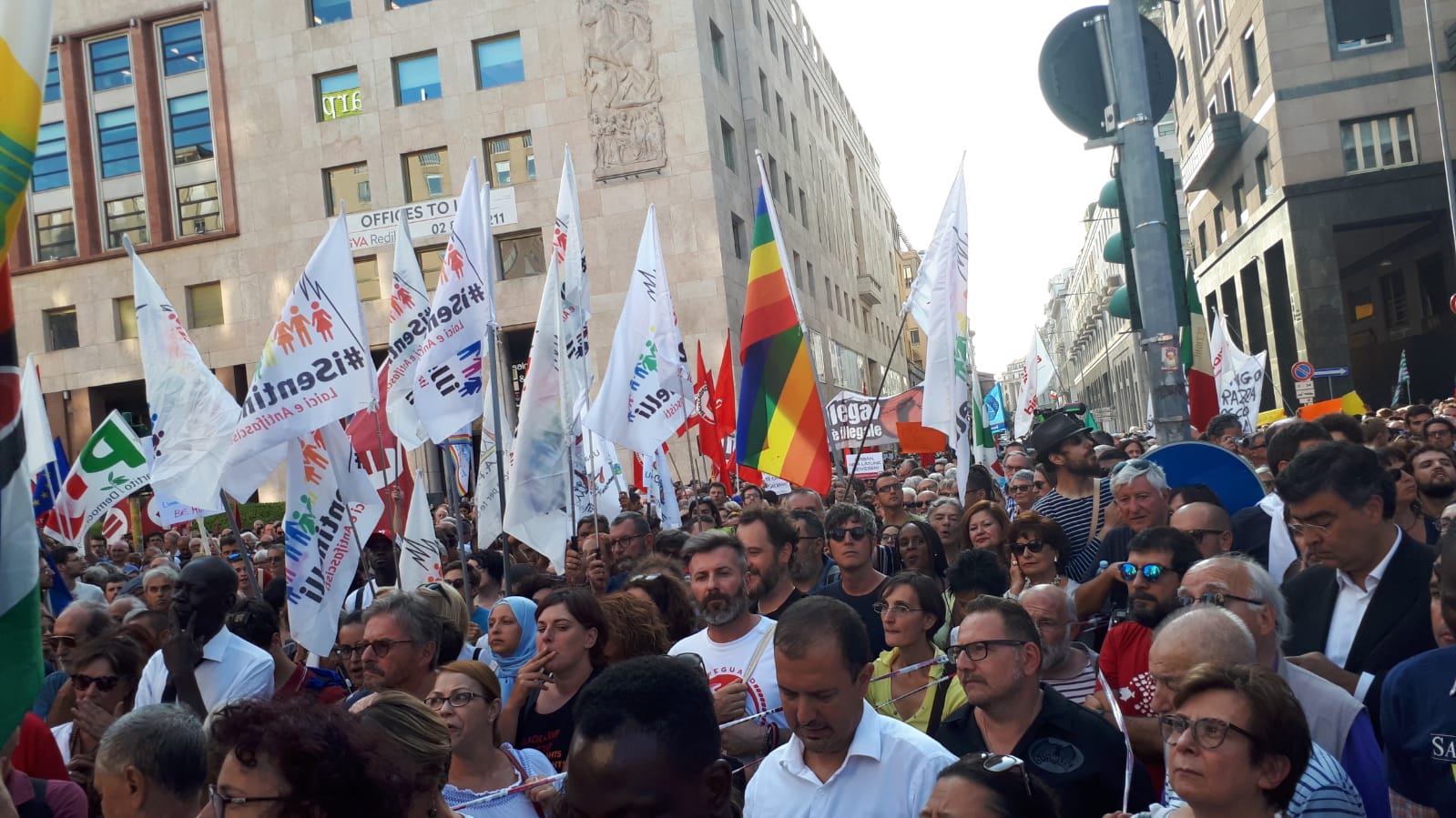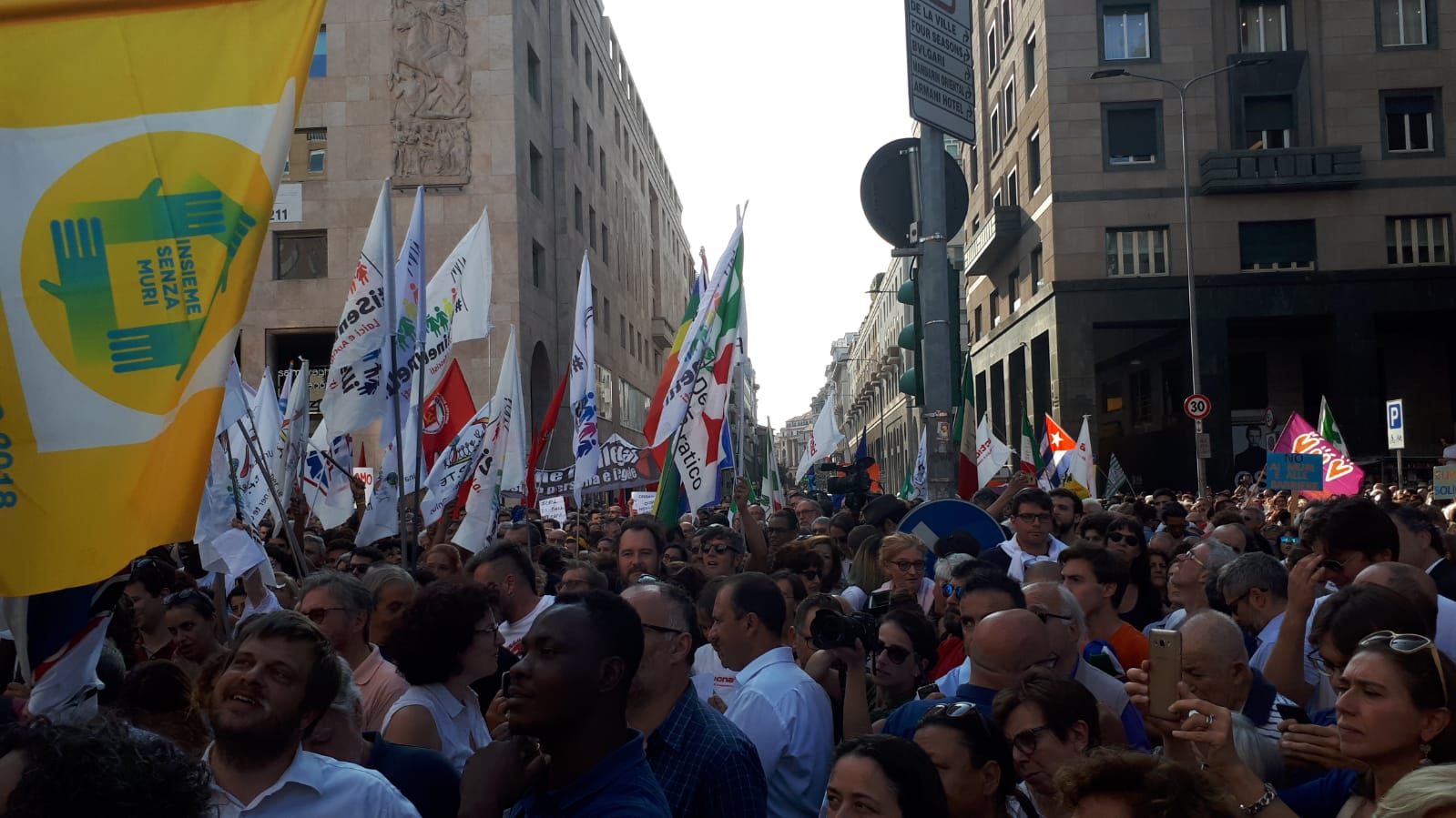 Migliaia di no all’Europa dei muri. Piazza San Babila a Milano si è riempita per contestare l’incontro tra Matteo Salvini e Viktor Orban. Il capo della Lega e il primo ministro ungherese potrebbero essere protagonisti di un asse di estrema destra alle elezioni europee del 2019.