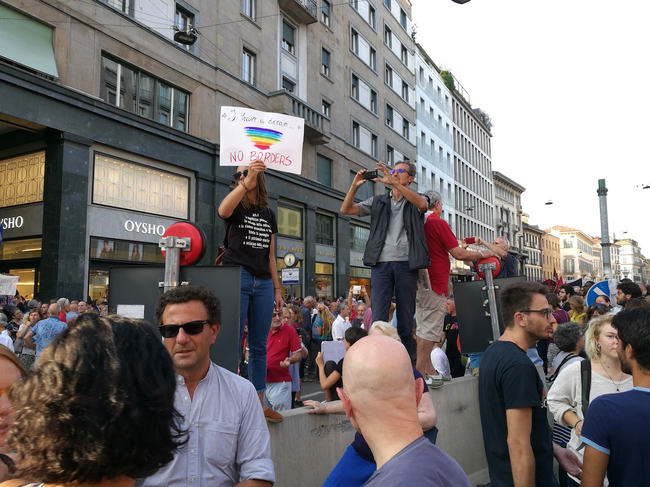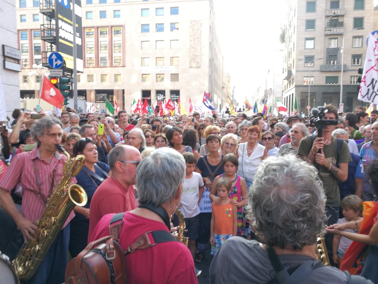 Contro la linea di chiusura ai migranti è scattata la protesta a cui hanno aderito tante forze politiche e sociali, da Insieme senza muri ai Sentinelli di Milano.