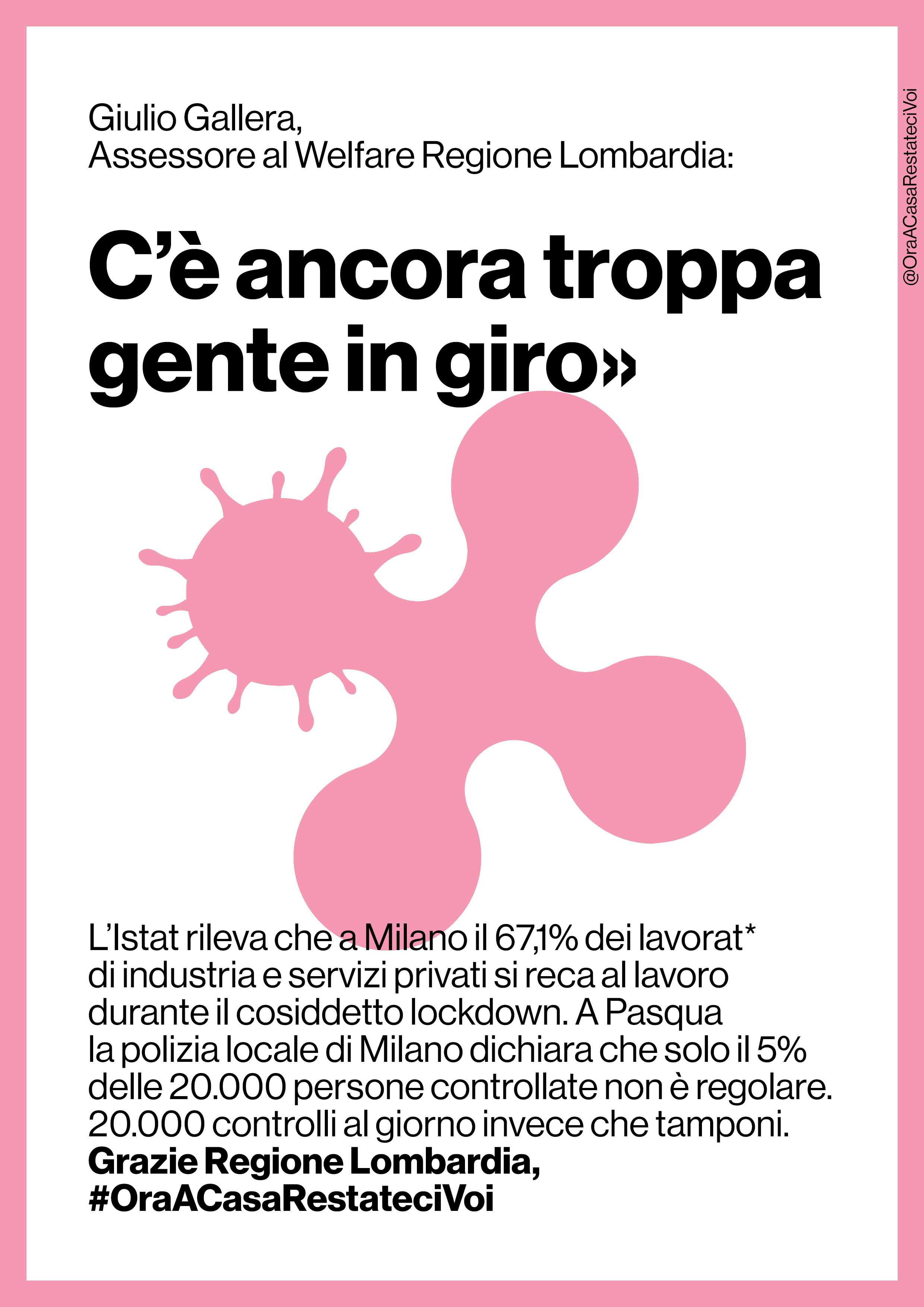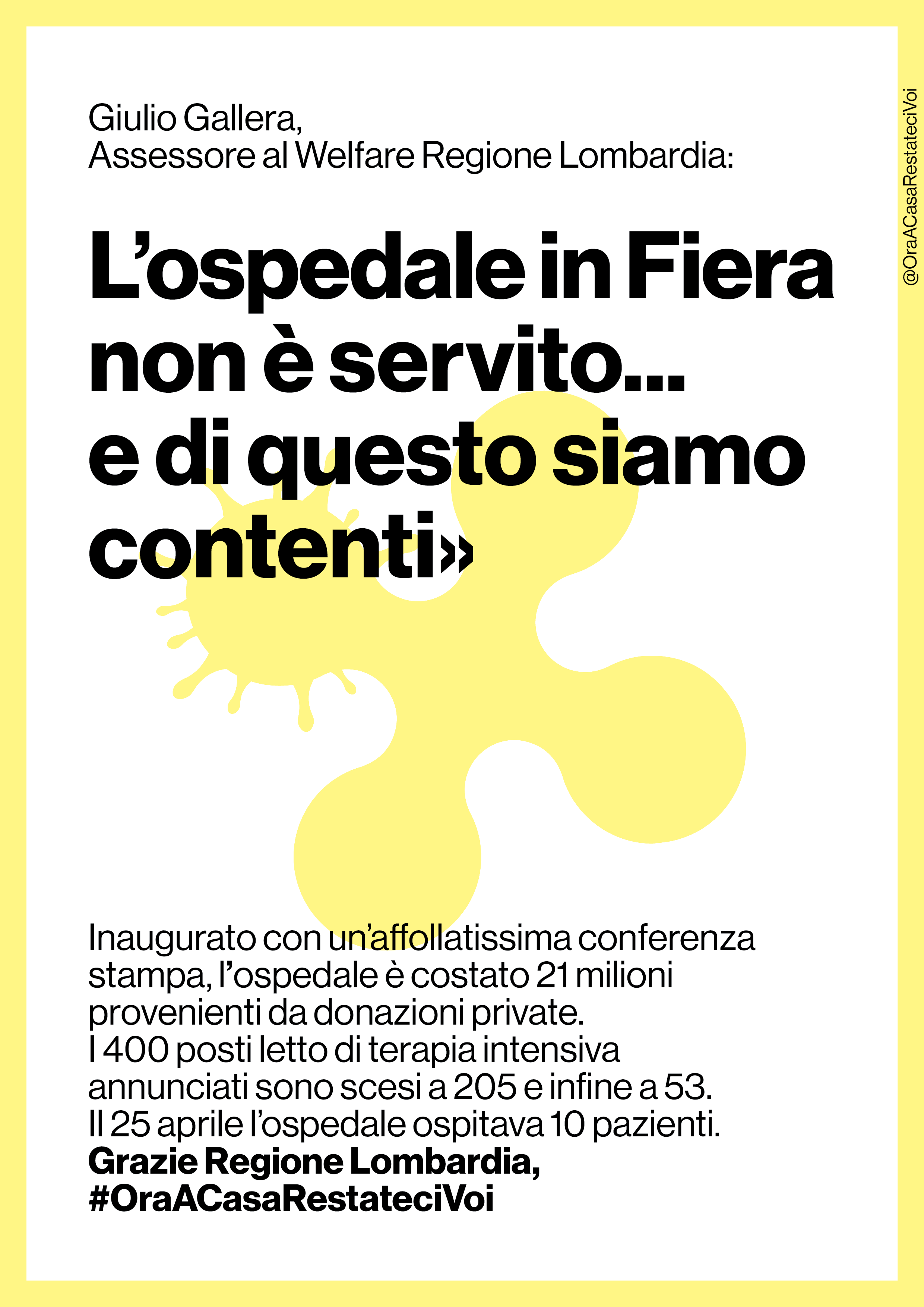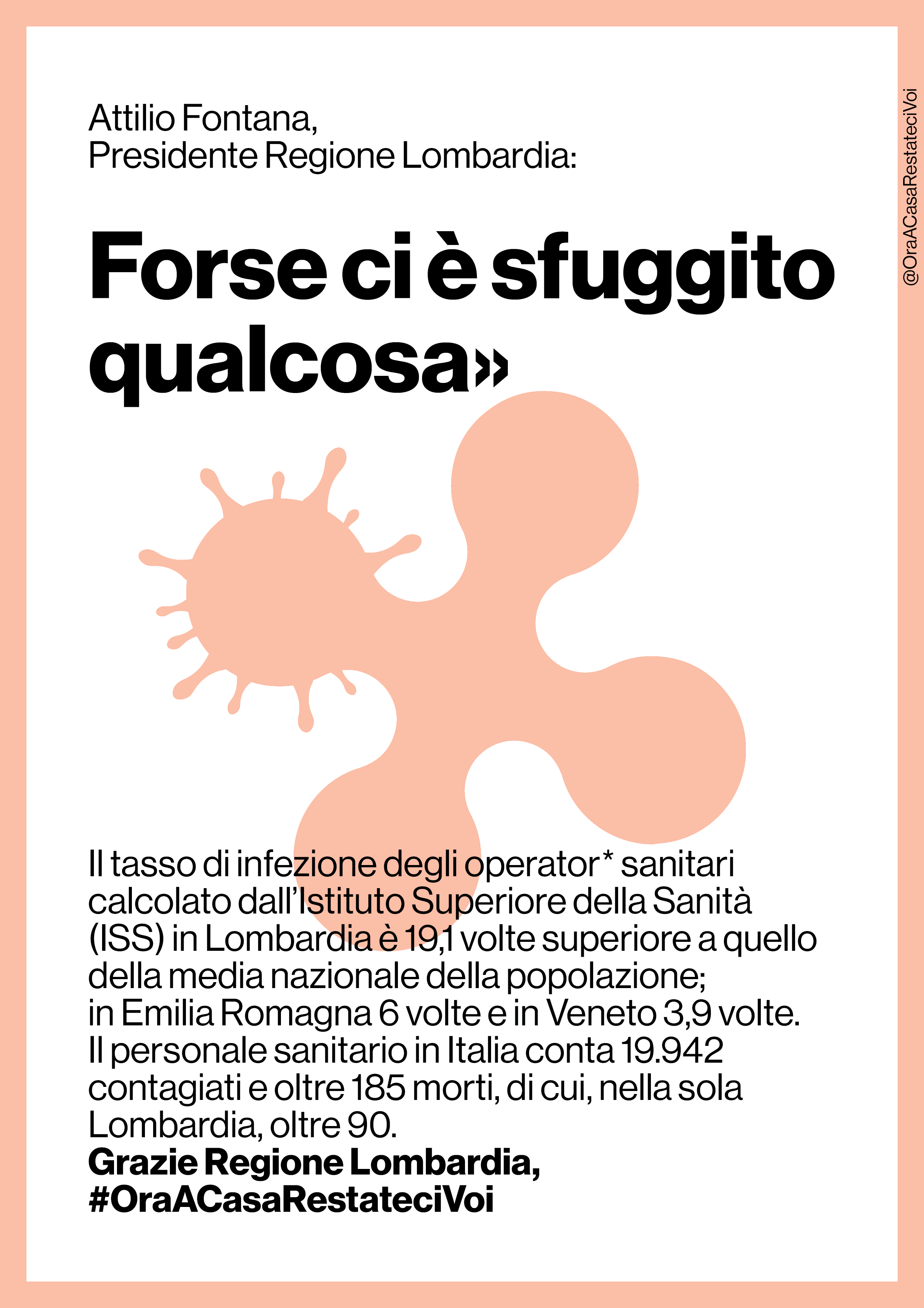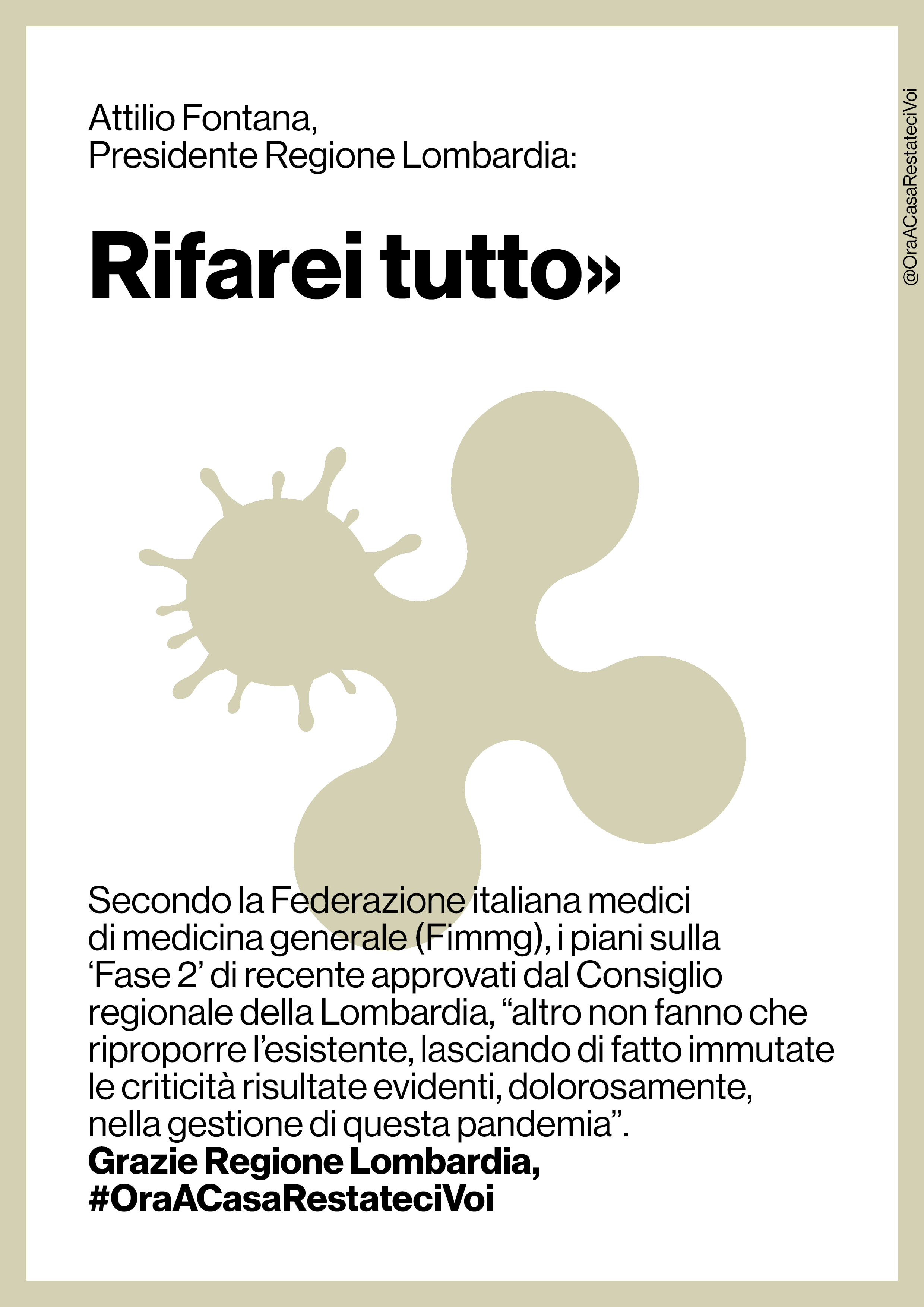 Alla vigilia della cosiddetta Fase 2, parte una campagna che analizza gli errori della gestione dell’emergenza in Lombardia e chiede le dimissioni dei politici responsabili della catastrofe sanitaria: “Ora a casa restateci voi”.