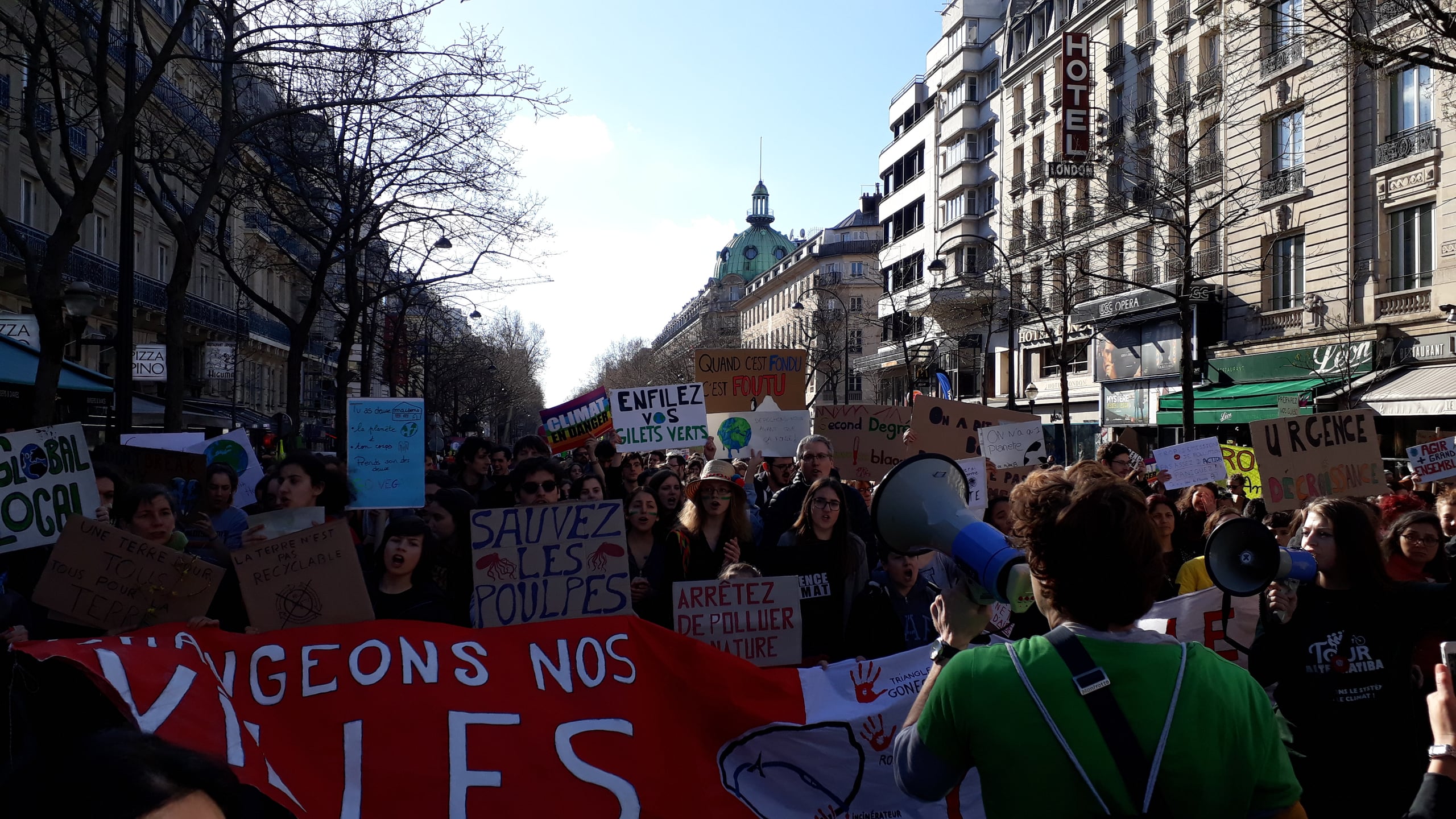 La giornata di sabato è stata il culmine di una settimana importante per l’ambientalismo francese. Venerdì, lo sciopero degli studenti aveva portato in strada 40.000 ragazzi: un record in un paese che fin’ora non aveva visto una grande partecipazione studentesca alle giornate per il clima. Il giorno prima, quattro ONG, tra cui Greenpeace Francia, hanno denunciato lo Stato per inadempienza e inazione climatica, basandosi sulla stessa legislazione che ha permesso di vincere la battaglia contro i danni da amianto. La mossa era stata proposta da quelle stesse associazioni con una petizione online che è stata firmata da più di due milioni di persone. E sabato, la marcia ambientalista ha visto anche la partecipazione di moltissimi gilet gialli pacifici, che pensano che giustizia sociale e salvaguardia del pianeta siano due facce della stessa medaglia.