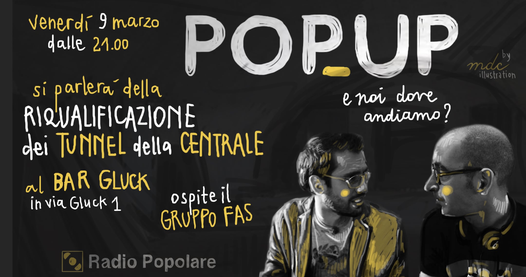 Venerdì 9 marzo PopUp registra al Bar Gluck in via Gluck 2 dalle 19.30.
