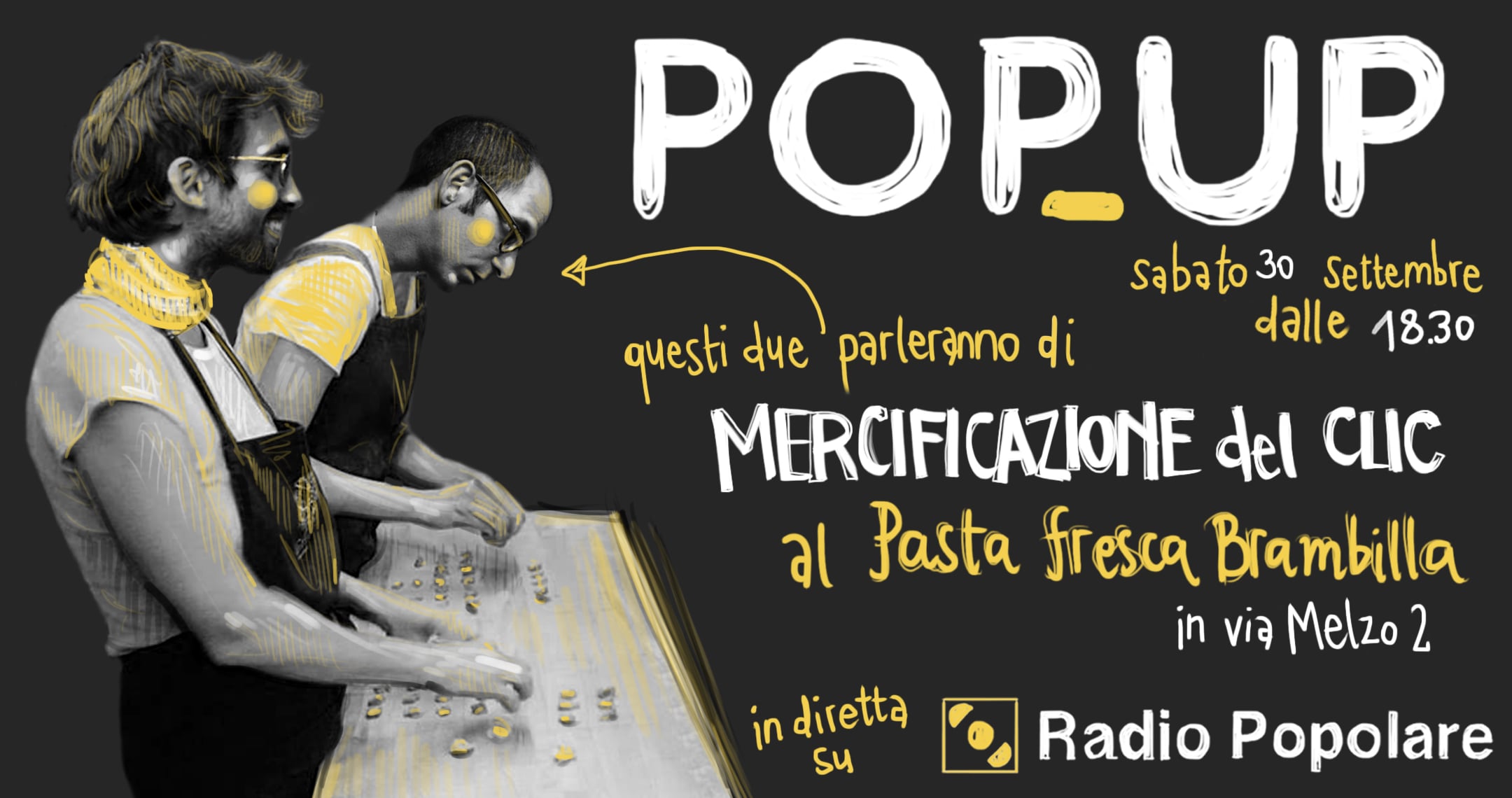 PopUp sabato 30 settembre trasmette live dalle 18.30 dagli amici del Pastificio Brambilla in via Melzo 2 a Milano