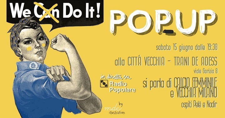 Sabato PopUp torna in diretta e trasmette da Città Vecchia- Trani de Adess in viale Gorizia 8 a Milano come di consueto dalle 18.30. Tema della trasmissione condotta da Alberto Nigro e Andrea Frateff-Gianni lo sport al femminile con una particolare attenzione all’avventura della nazionale italiana di calcio impegnata nei mondiali in Francia. Ospite Anita Pirovano. Nella seconda parte invece si parlerà di vecchia Milano e dei “trani”.