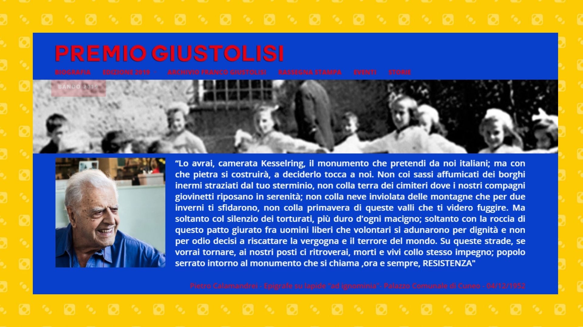 Il Premio è dedicato alla memoria di Franco Giustolisi, di cui oggi ricorre il quinto anniversario della scomparsa. E’ giunto alla sua quinta edizione e ha toccato alcuni luoghi teatro di stragi nazifasciste tra il 1943 e il 1945 e oggetto delle inchieste di Franco Giustolisi: Sant’Anna di Stazzema (2015), Marzabotto (2016), Boves (2017), Capistello (2018), e nel 2019 Roccaraso.